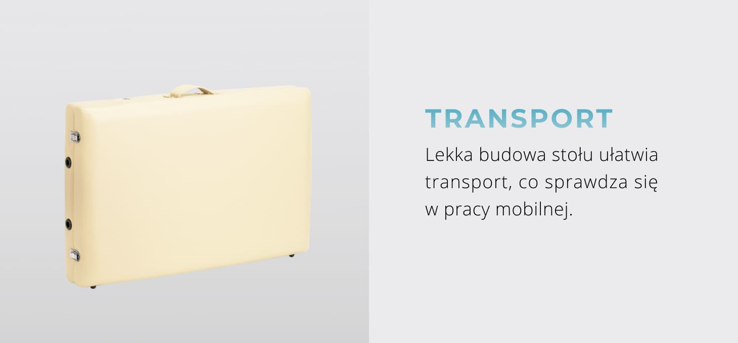 Lekka konstrukcja ułatwia przenoszenie, co czyni stół idealnym wyborem do pracy mobilnej. Model BALANCE składa się i rozkłada szybko oraz bez wysiłku, a po złożeniu zajmuje niewiele miejsca. Pod blatem umieszczono pasy do mocowania akcesoriów na czas transportu, a boczne uchwyty umożliwiają wygodne przestawianie stołu w dowolnym momencie. W zestawie znajduje się także dedykowana torba transportowa z paskiem na ramię i uchwytem – chroni stół przed zabrudzeniami i uszkodzeniami, zapewniając komfortowe przemieszczanie.