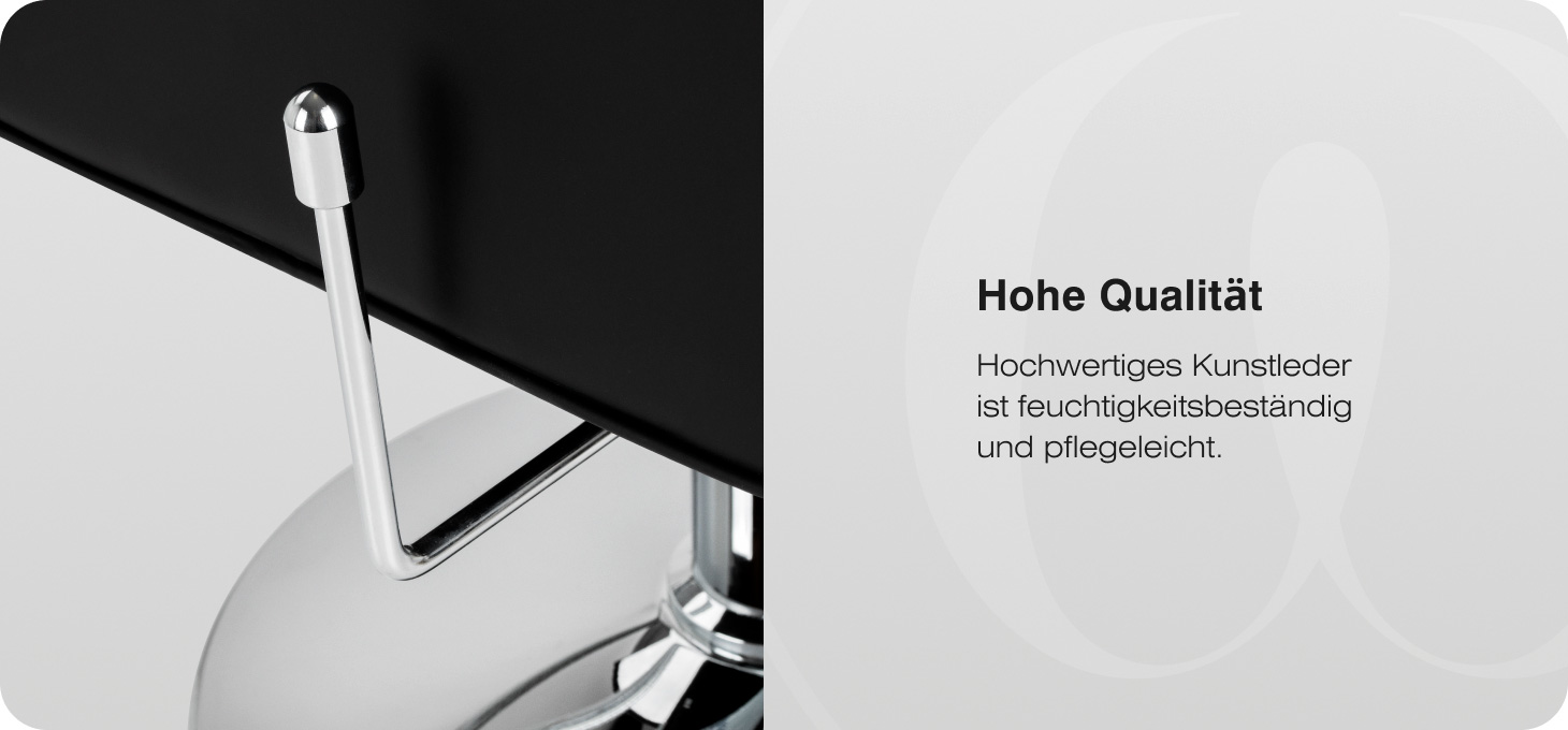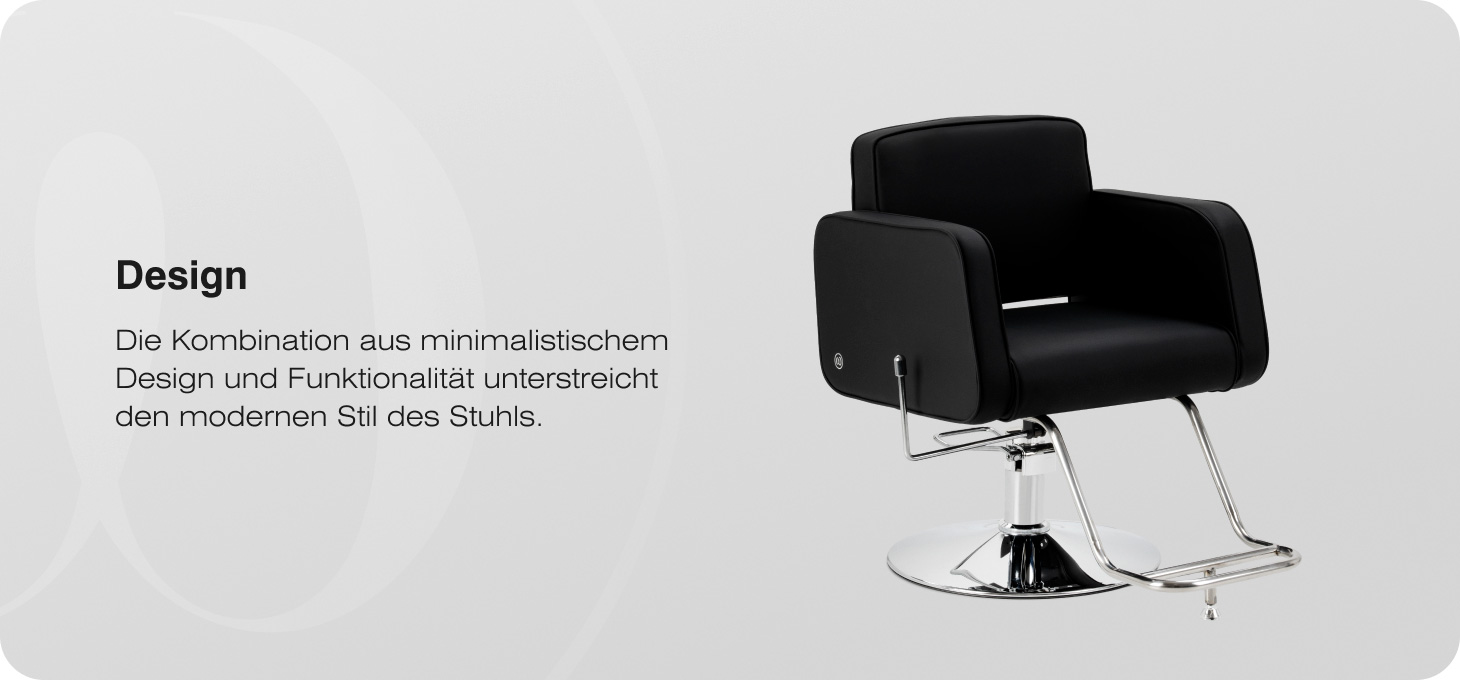 Das Modell zeichnet sich durch ein modernes Design aus, das den professionellen Charakter des Salons unterstreicht. Die Polsterung aus hochwertigem Kunstleder in klassischem Schwarz verleiht dem Ganzen ein elegantes Aussehen, und die Oberfläche zeichnet sich durch Feuchtigkeitsbeständigkeit und einfache Pflege aus. Der runde Sockel und die Fußstütze aus Metall unterstreichen den modernen Stil des Sessels und schaffen eine harmonische Form, die sich in vielfältige Einrichtungsstile einfügt.
