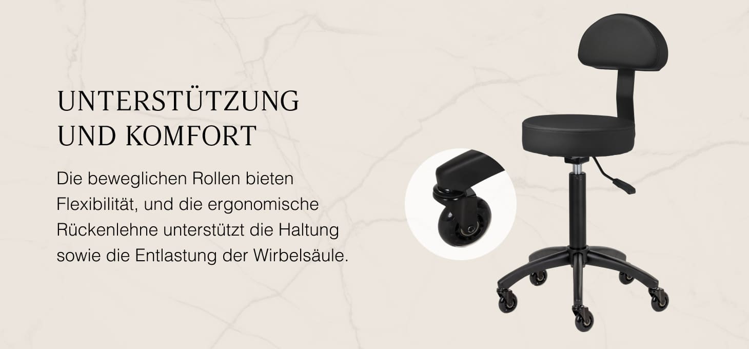 Der praktische Friseurhocker Gabbiano D026 mit Rückenlehne wurde für den Komfort und die Ergonomie des Arbeitsalltags entwickelt. Die konturierte Rückenlehne unterstützt die richtige Haltung und entlastet die Wirbelsäule auch während vieler Behandlungsstunden. Die stabile Konstruktion in Kombination mit der hohen Beweglichkeit der Räder sorgt für Bewegungsfreiheit und vollen Komfort.