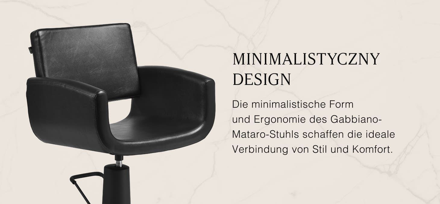 Der Friseurstuhl Gabbiano Mataro ist eine Kombination aus moderner Schlichtheit und Funktionalität. Dezent abgerundete Linien verleihen ihm eine Leichtigkeit, und ein stabiler, runder Sockel in mattem Schwarz unterstreicht seinen professionellen Look. Der Sitz mit angenehm anzufassendem Kunstleder in Schwarztönen sorgt für Komfort auch bei langen Behandlungen. Sorgfältig ausgewählte Materialien sorgen für Langlebigkeit, Feuchtigkeitsbeständigkeit und einfache Reinigung. Der Sessel passt sowohl zu modernen als auch zu klassischen Arrangements und unterstreicht den Stil und Charakter des Salons.