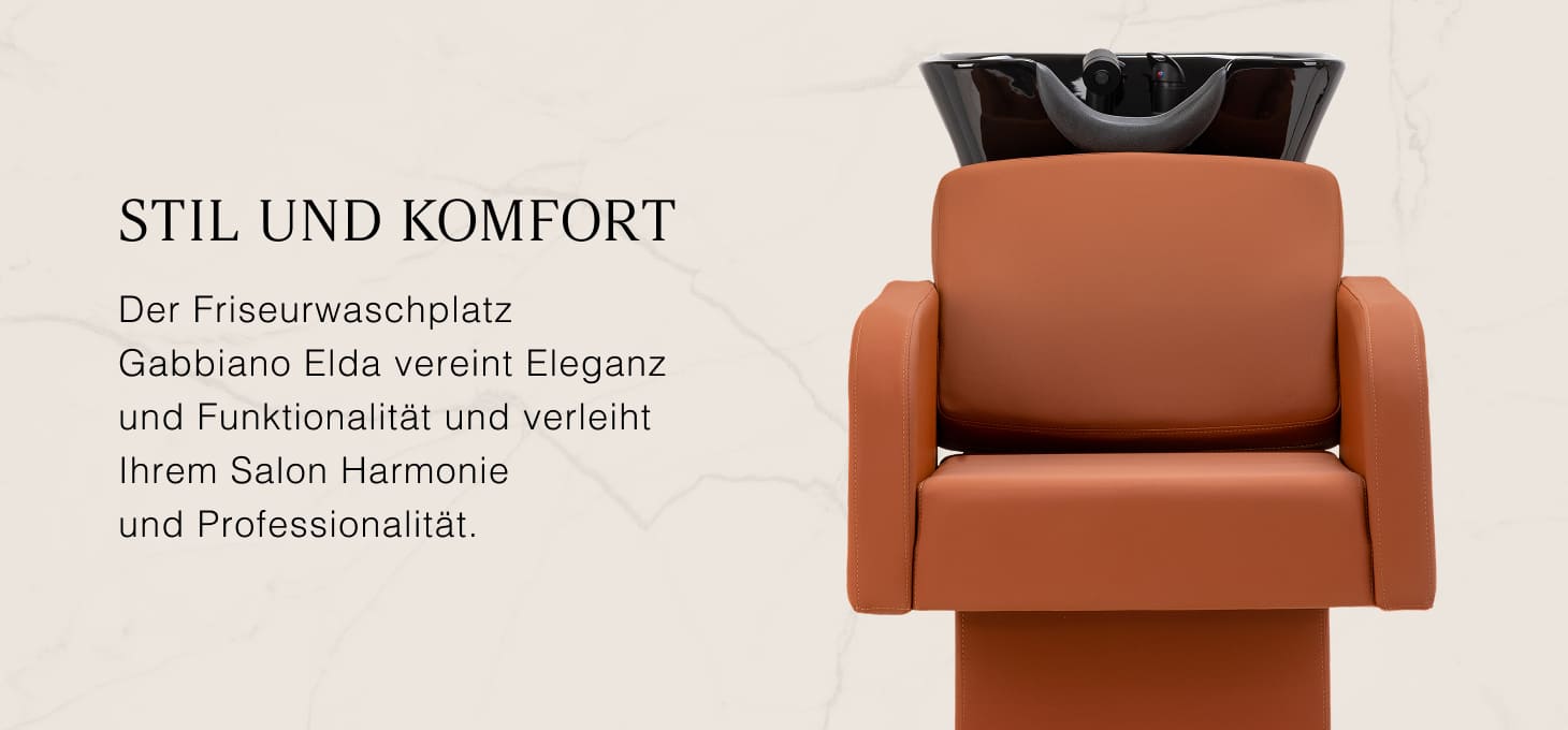 Die Friseurwaschanlage Gabbiano Elda ist eine Kombination aus Komfort, Ästhetik und Funktionalität, die perfekt auf die Bedürfnisse moderner Friseursalons zugeschnitten ist. Ein richtig profilierter Stuhl, gefüllt mit strapazierfähigem und flexiblem Schaumstoff, garantiert eine stabile Lendenwirbelstütze und hohen Komfort auch bei längeren Behandlungen. Die Armlehnen ermöglichen es, die Schultern richtig zu positionieren und die Entspannung des Kunden zu fördern. Die Polsterung aus angenehm anzufassendem Kunstleder in einem eleganten Braunton zeichnet sich durch hohe Verschleißfestigkeit, einfache Reinigung und ästhetische Verarbeitung aus, die den professionellen Charakter der Möbel unterstreicht. Komplette Armaturen in Schwarztönen sind im Lieferumfang enthalten, einschließlich eines Wasserhahns, eines Duschkopfes und spezieller Schläuche, um ein komplettes Set an Werkzeugen für die Arbeit zu gewährleisten.