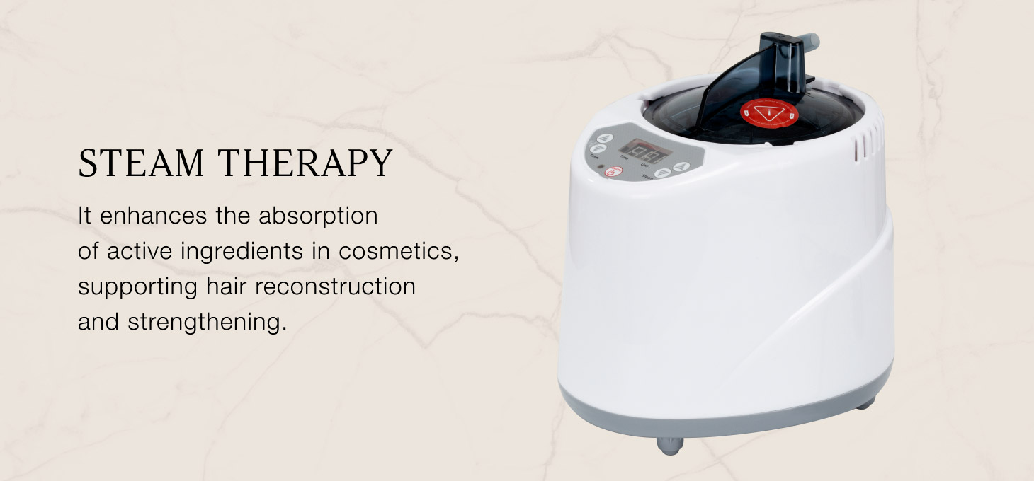 Die revolutionäre Pflegemethode nutzt die Eigenschaften von Dampf, um das Haar zu regenerieren und mit Feuchtigkeit zu versorgen. Das Set enthält ein spezielles Gerät, das Dampf erzeugt, und eine spezielle Waschbeckenabdeckung, mit der Sie ihn präzise auf Ihr Haar ausrichten können. Dadurch werden die in Masken, Ampullen und anderen Pflegepräparaten enthaltenen Wirkstoffe besser aufgenommen und unterstützen die Wiederherstellung und Stärkung des Haares. Die Dampftherapie verbessert ihre Struktur, erhöht die Widerstandsfähigkeit gegen Schäden und stellt einen gesunden Glanz wieder her, wodurch sie weicher, flexibler und voller Leben werden. Ein zusätzlicher Vorteil der Behandlung ist die Möglichkeit, ätherische Öle zu verwenden, die unter dem Einfluss von Dampf entspannende Aromen freisetzen. Die Kombination aus Dampftherapie und Aromatherapie verstärkt die entspannende Wirkung und schafft ein einzigartiges, beruhigendes Erlebnis für Körper und Sinne.