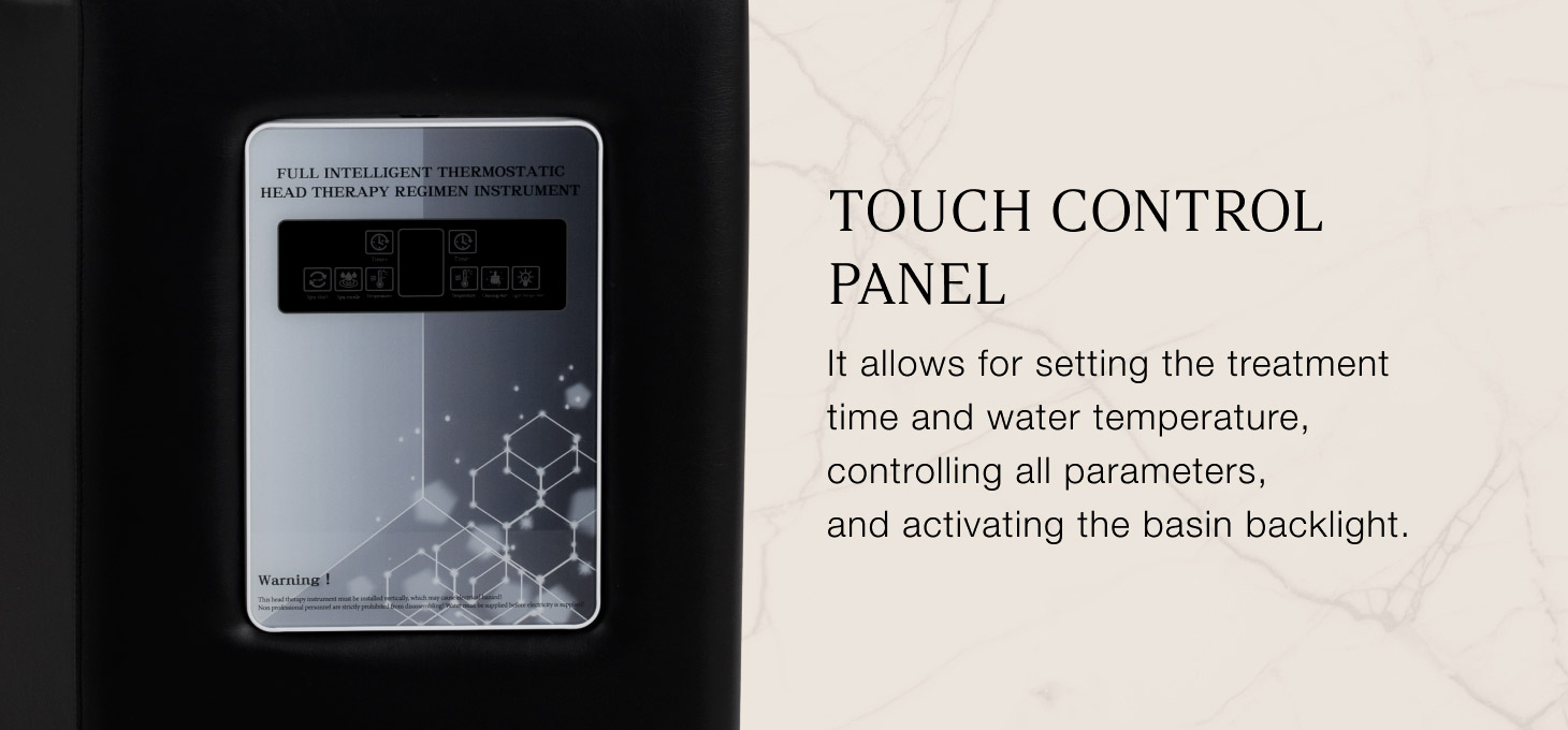 Das intuitive Touchpanel bietet die volle Kontrolle über die Behandlungsparameter und sorgt so für Bedienkomfort und Benutzerfreundlichkeit. Es ermöglicht Ihnen, die Betriebsdauer, Temperatur und Intensität des Wasserstrahls einzustellen – Sie können zwischen drei Modi wählen: weich, komfortabel und stark. Es kann auch verwendet werden, um die Lichttherapie-Funktion, d.h. die Beleuchtung der Schale, zu aktivieren, was eine entspannende Atmosphäre schafft und die Regeneration unterstützt. Ein zusätzlicher Komfort ist die Fernbedienung, mit der Sie das Dampftherapiegerät von überall im Büro aus bedienen können.