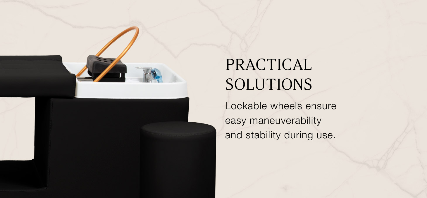 Die Waschanlage ist mit einer Mischbatterie ausgestattet, mit der Sie die Temperatur ganz einfach an die Vorlieben des Kunden anpassen können. Ein spezieller Platz für den Duschkopf erleichtert die Arbeit, und der verchromte Stopfen mit einem speziellen Sieb ermöglicht es Ihnen, den Wasserfluss zu kontrollieren und hohe Hygienestandards im Salon aufrechtzuerhalten. Der Wasseranschluss ist im Inneren des Gehäuses hinter einer Abdeckung aus flexiblem Material versteckt, die es Ihnen ermöglicht, das Sanitärsystem ästhetisch zu maskieren und ein einheitliches, professionelles Erscheinungsbild des Geräts zu erhalten.