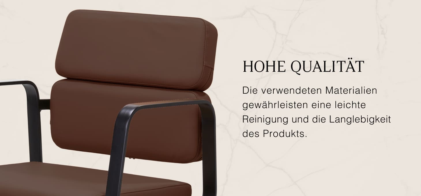 Die Füllung aus strapazierfähigem, verformungsbeständigem Schaumstoff und die Polsterung aus angenehm haptischem Kunstleder sorgen für die Langlebigkeit der Möbel und ihre komfortable Nutzung über einen langen Zeitraum. Außerdem machen sie die Geräte feuchtigkeitsbeständig, langlebig und leicht zu reinigen. Der Bezug in Grautönen verleiht ihm einen einzigartigen Charakter. Die Ausstattung zeichnet sich durch ein modernes Design aus, das den Sessel in vielen professionellen Salons großartig aussehen lässt.