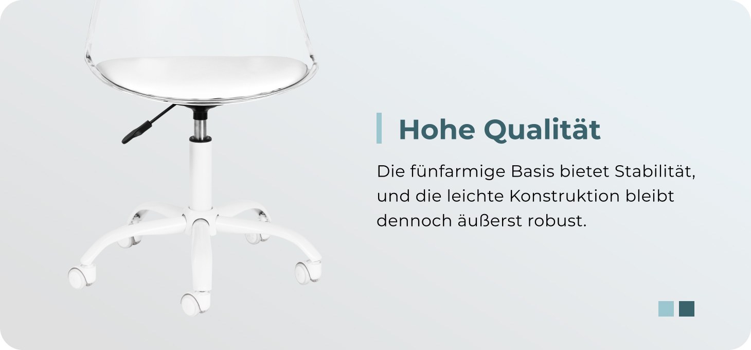 Das Modell zieht mit seiner beeindruckenden, transparenten Rückenlehne Aufmerksamkeit auf sich, was dem Ganzen Leichtigkeit und einen modernen Charakter verleiht. Die Kombination aus transparentem Design mit gepolstertem weißem Leder, einem synthetischen Sitzkissen und einer weißen Basis schafft einen anspruchsvollen Kontrast, der Eleganz betont. Dank dessen wird der Stuhl nicht nur zu einem funktionalen Gerät, sondern auch zu einer stilvollen Dekoration des Büros. Es passt perfekt in jedes Interieur und passt perfekt zur Ästhetik moderner Schönheitssalons.