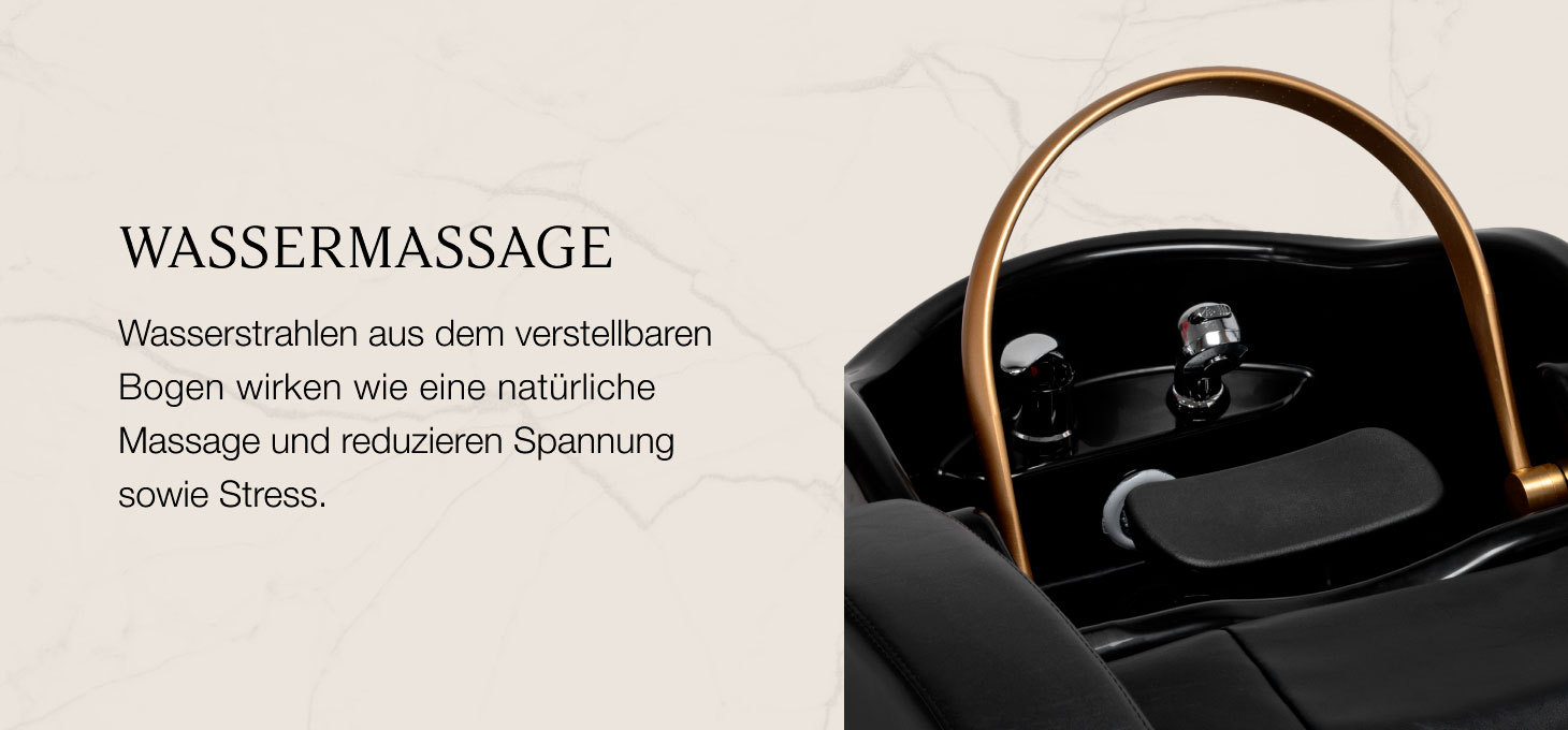 Der für das Waterfall Head SPA bestimmteBogen mit einstellbarem Neigungswinkel ermöglicht eine entspannende Wassermassage der Kopfhaut. Die Wasserstrahlen wirken wie eine natürliche Massage, verbessern die Durchblutung, reduzieren Verspannungen und Stress und lindern Beschwerden wie Kopfschmerzen oder Nackenverspannungen. Ein intelligentes Kreislaufsystem entnimmt Wasser aus der Wanne und verwendet es wieder, wodurch die Kontinuität der Behandlung und ein hoher Bedienkomfort gewährleistet werden. Die Kombination aus Technologie und Entspannung fördert die Verbesserung des Haarzustands und eine tiefe Entspannung.