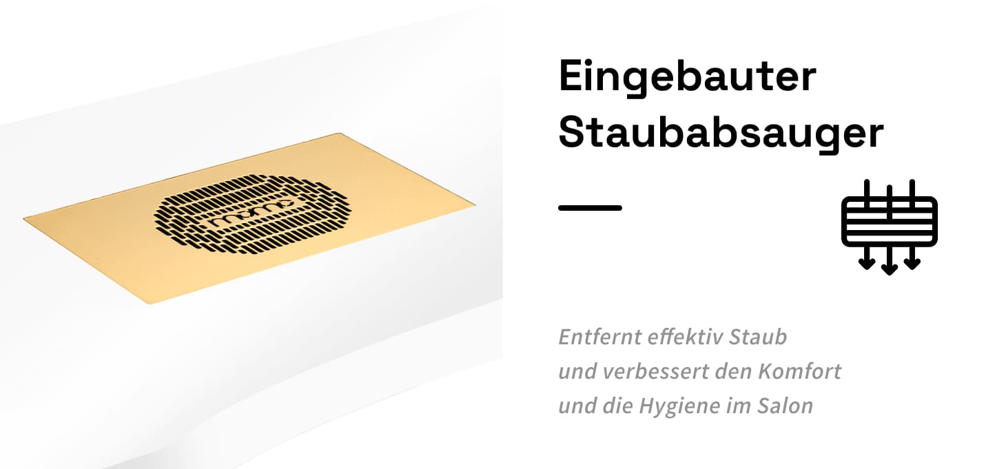 Der in die Arbeitsplatte eingebaute Kassetten-Staubabscheider Momo J-02 verbessert den Arbeitskomfort und die Hygiene erheblich und entfernt effektiv den Staub, der bei kosmetischen Behandlungen, wie z. B. Maniküre, entsteht. Mit diesem Gerät bleibt die Luft im Salon sauber und der Arbeitsplatz frei von Schadstoffen, was die Sicherheit sowohl für die Kosmetikerin als auch für die Kunden erhöht. Der Staubabscheider ist einfach zu bedienen und zu warten, was seine Funktionalität weiter erhöht. Regelmäßige Reinigung und Filterwechsel sorgen für eine gleichbleibend hohe Absorptionseffizienz. Es ist möglich, zusätzliche Ersatzfilter (SKU 123581) zu erwerben.