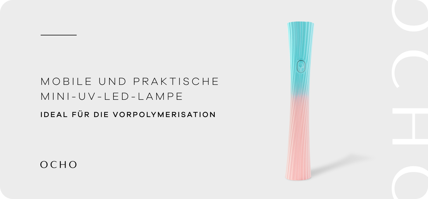 OCHO ist eine einzigartige Marke, die sich auf professionelle Produkte für Nagelstylisten konzentriert. Das Sortiment umfasst Hybridlacke, Gels, spezialisierte Lampen und Nagelpflegezubehör. OCHO-Produkte erfüllen sowohl die Anforderungen erfahrener Nutzer als auch derjenigen, die gerade erst ihr Maniküre-Abenteuer beginnen.