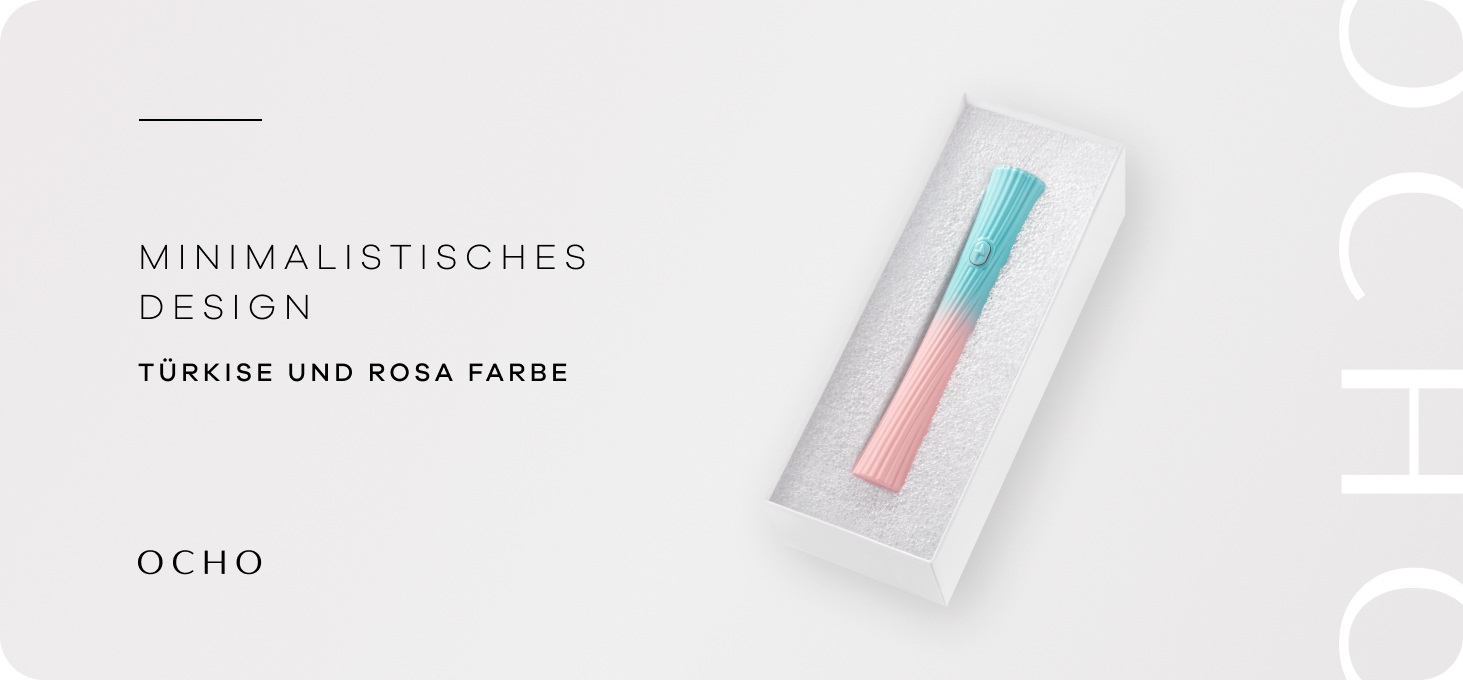 Die schlanke, verlängerte Form mit ergonomischen Proportionen und dekorativer, gerillter Oberfläche sorgen für einen festen Griff und einen modernen Charakter. Ein zarter Farbwechsel in Türkis- und Pastellrosa verleiht dem Gerät Leichtigkeit.
