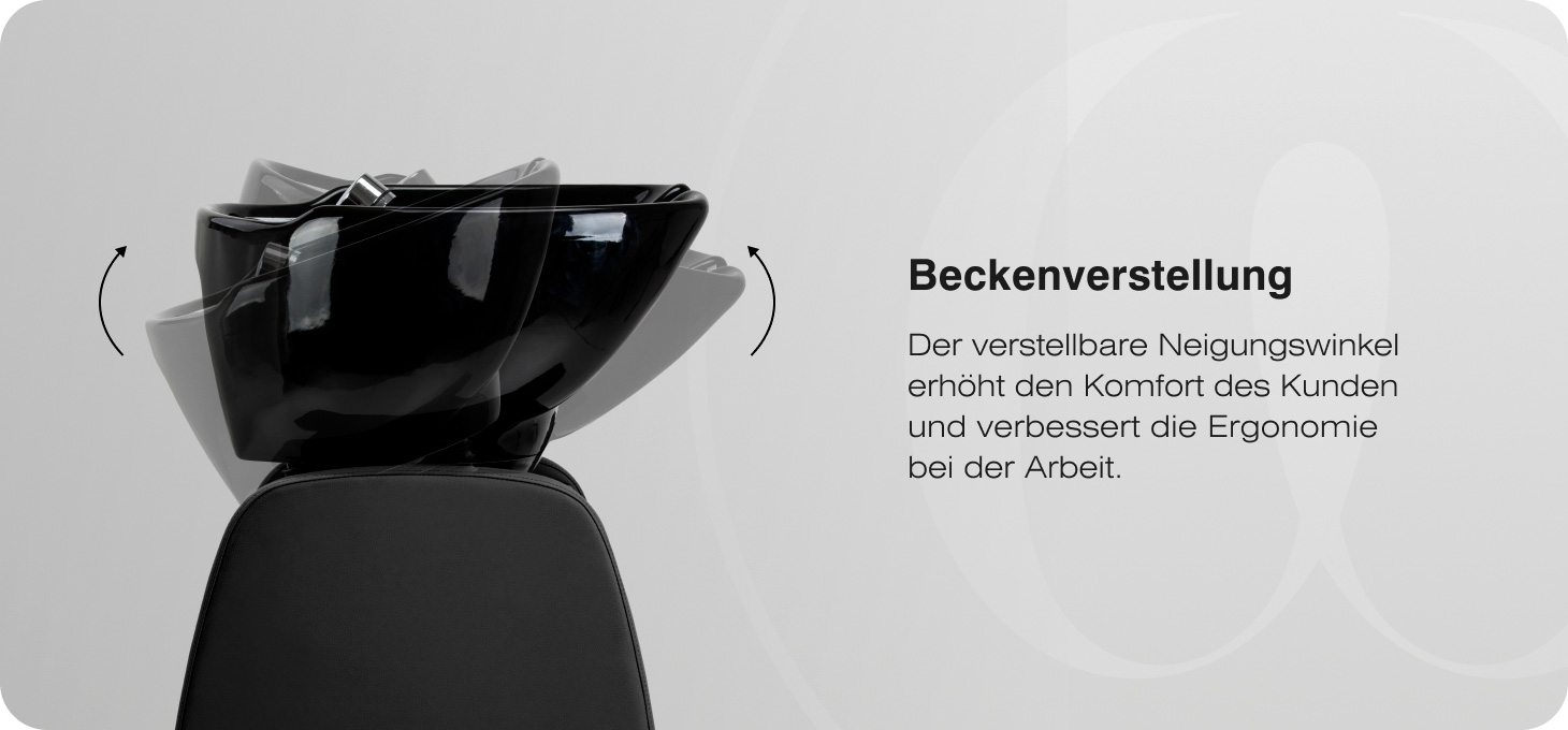 Die tiefe, weiße Keramikschüssel wurde für die bequeme Durchführung von Haarwasch- und Pflegebehandlungen entwickelt. Die entsprechend geformte Kontur begrenzt das Verspritzen von Wasser und Pflegeprodukten und trägt so zur Sauberkeit rund um den Arbeitsplatz bei. Der einstellbare Neigungswinkel ermöglicht eine einfache Anpassung an die Körpergröße des Kunden und die Vorlieben des Friseurs und erhöht so die Ergonomie der durchgeführten Dienstleistungen. Die langlebige Keramik zeichnet sich durch eine hohe Beständigkeit gegen Feuchtigkeit, Temperatur und Friseurprodukte aus, und die glatte Oberfläche fördert die Hygiene. Eine Kunststoffauflage mindert das Kältegefühl beim Hautkontakt mit der Keramik.