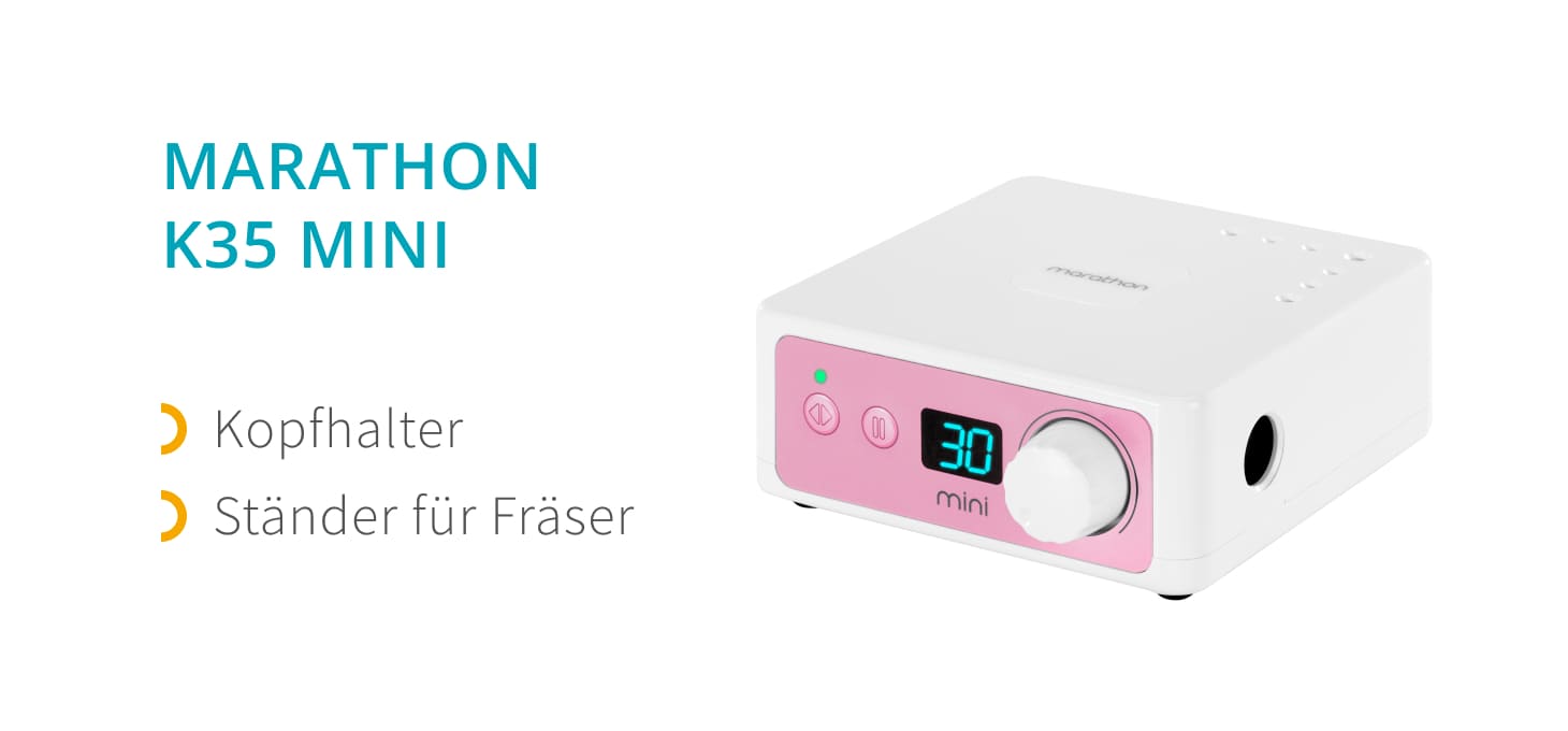 Die High-End-Nagelfräser Saeyang Marathon K35 mini ist ein praktisches Gerät, mit dem Sie Nägel und Nagelhaut genau entwickeln und für weitere Behandlungen vorbereiten können. Die Verwendung des Geräts macht es viel einfacher, die Überreste früherer Stilisierungen zu entfernen. Gute Kopfbalance, kleine Abmessungen, durchdachte Funktionalitäten und eine Vielzahl verfügbarer Optionen machen die Fräse perfekt für den professionellen Einsatz, insbesondere für mobile Einsätze.