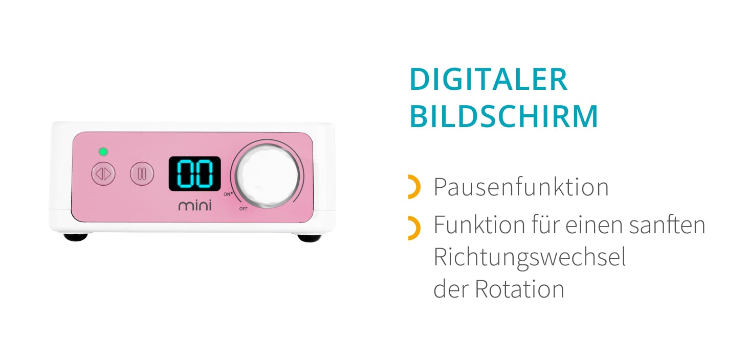 Die Nagelfräser ist mit einem übersichtlichen Bedienfeld mit Digitalanzeige ausgestattet, das eine Schlüsselrolle bei der Überwachung und Steuerung des Betriebs des Geräts spielt. Der Bildschirm informiert über die Drehzahl, mit der der Maschinenkopf gerade arbeitet, um einen präzisen und sicheren Betrieb der Nagelfräser zu gewährleisten. Die Drehzahlverstellung über den Drehknopf ist bis zu 30.000 Umdrehungen pro Minute möglich, wodurch Sie sich an individuelle Bedürfnisse anpassen und so eine Vielzahl von Behandlungen komfortabel durchführen können. Das System der sanften Richtungsänderung der Rotation mit integrierter Pause gewährleistet einen sicheren und komfortablen Übergang zwischen beiden Arbeitsrichtungen. Zudem leuchtet die Drehrichtungs-LED grün oder rot, wodurch die Laufrichtung der Fräse besser zu erkennen ist. Das Bedienfeld verfügt außerdem über eine Pausenfunktion, mit der der Benutzer den Betrieb des Geräts stoppen kann, was die Kontrolle über den Prozess erhöht. Die eingesetzten Lösungen machen die Bedienung der Nagelfräser intuitiv und sehr effektiv.
