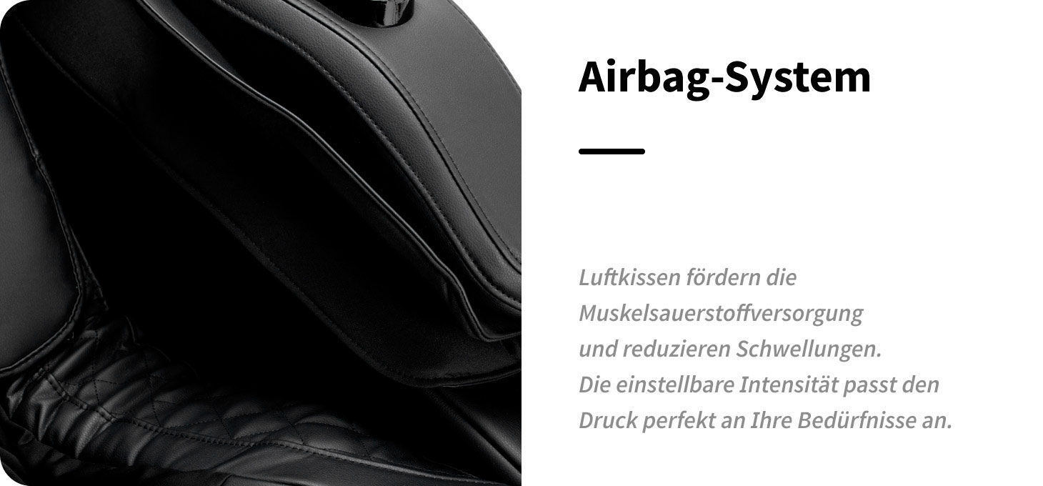 | Queen | Kombination aus sanftem Kneten, Luftkissenkompression und leichten niederfrequenten Vibrationen zur Unterstützung der Durchblutung, Hautspannung und Reduktion von Schwellungen. | Entspannung, Figurformung, Reduzierung von Beinschwellungen und Verbesserung der Hautfestigkeit. |