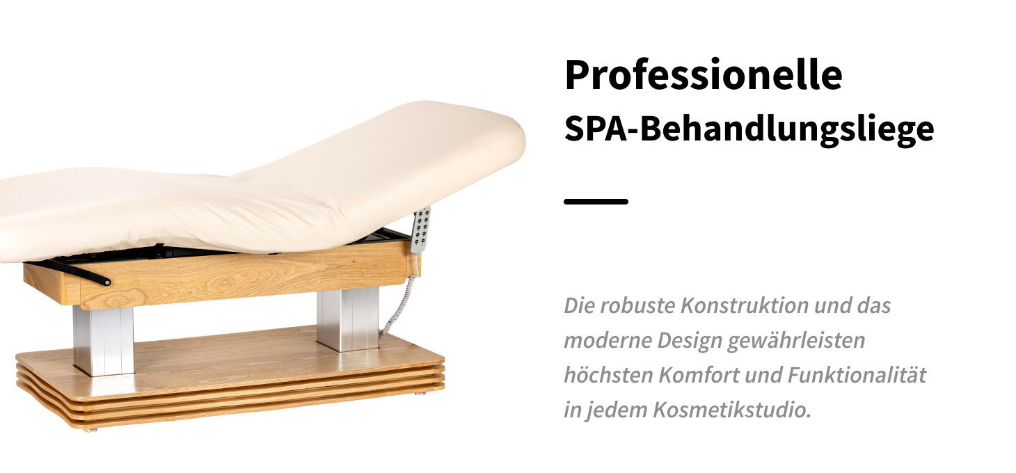 Die SPA-Liege Sillon Comfort wurde für moderne Kosmetiksalons, Massagesalons und SPA-Bereiche entwickelt. Dank fortschrittlicher Technologie und einer soliden, langlebigen Konstruktion bietet sie sicheren und bequemen Halt bei jeder Behandlung. Das durchdachte Design und die sorgfältig ausgearbeiteten Details garantieren maximale Funktionalität, Ästhetik und Arbeitskomfort und entsprechen damit voll und ganz den Anforderungen von Fachleuten der Beauty-Branche.