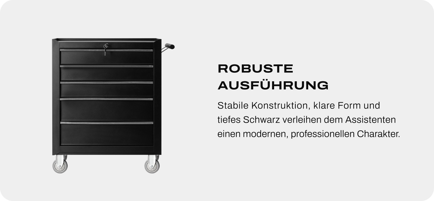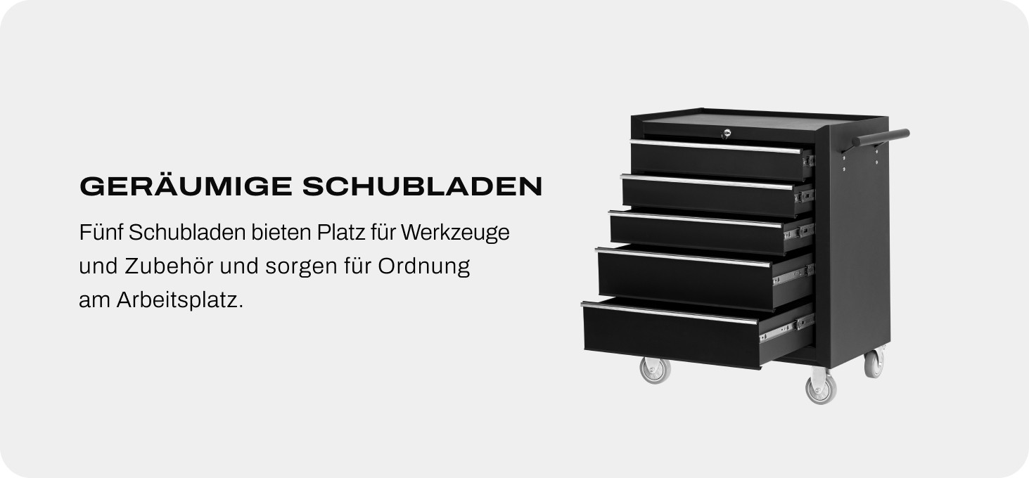 Geräumige Schubladen für Zubehör und Werkzeuge