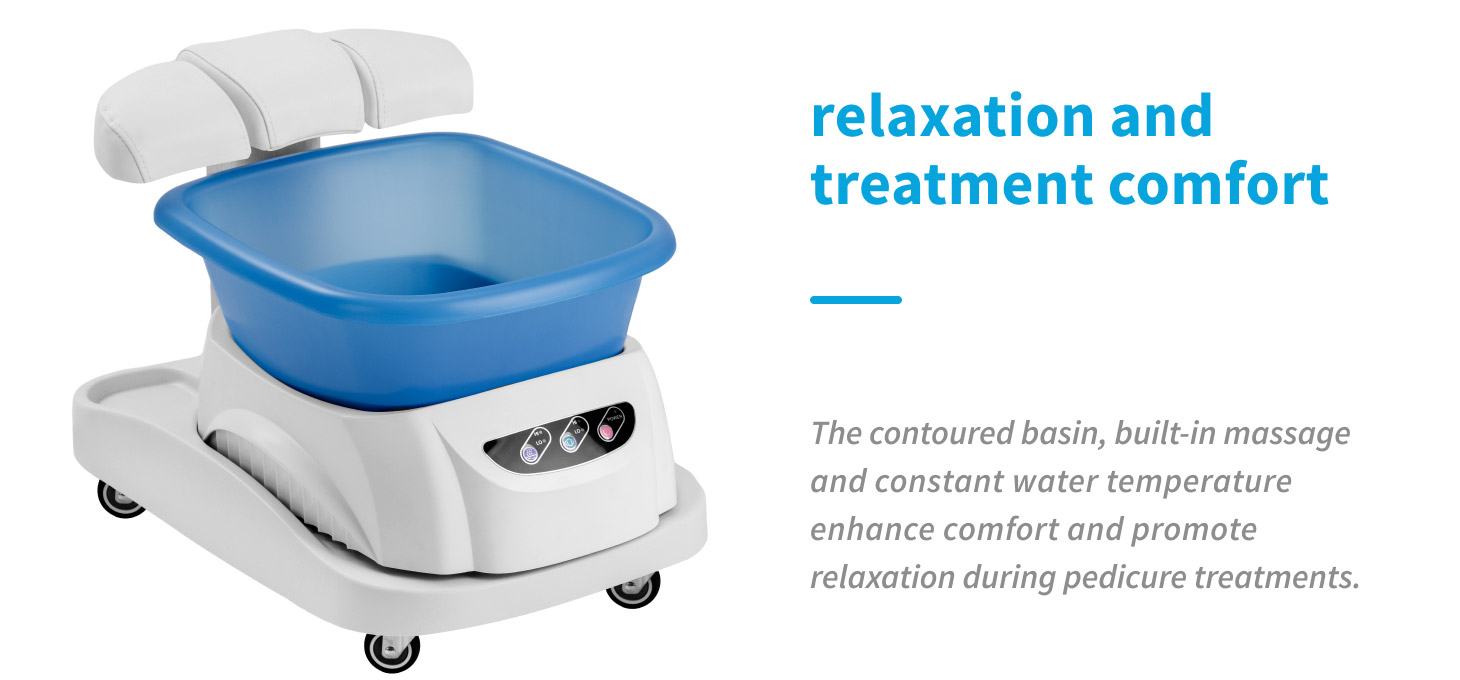 The profiled basin allows comfortable foot positioning, while the built-in massage functions and constant water temperature maintenance increase comfort during treatments. The solid construction ensures durability during intensive use, and the applied materials make it easy to maintain cleanliness and hygiene.