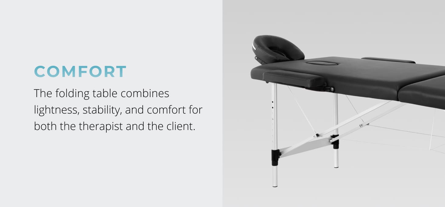 The BALANCE massage table has been designed with comfort and durability in mind. Soft imitation leather upholstery and a foam filling with optimum firmness ensure comfort during treatments. The materials are resistant to moisture, easy to clean and durable, which makes the table perfect for everyday work. The aluminum legs increase the stability of the structure, and thanks to its resistance to moisture, the table can also be safely used in places such as fitness clubs or locker rooms.
