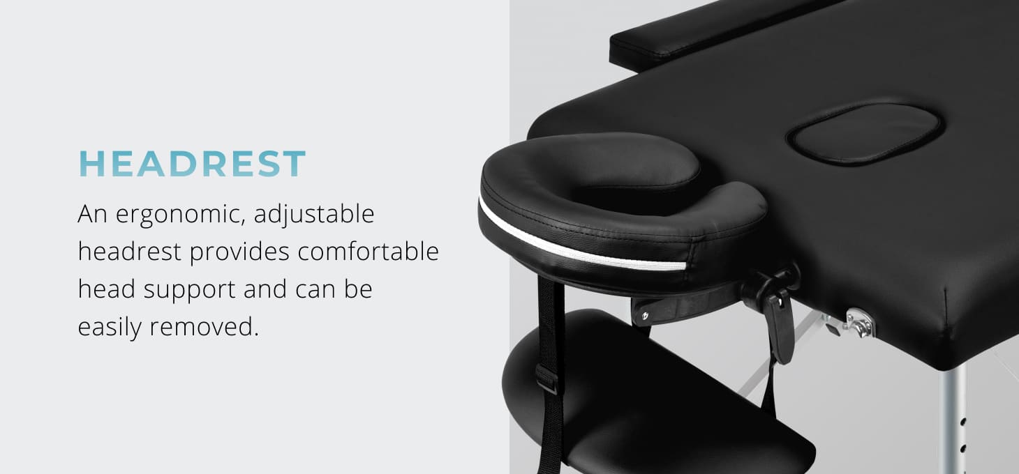 To ensure maximum comfort, the person using the table can rest their head on the ergonomic headrest, which is included in the set. This element is easy to adjust – it allows the angle to be adjusted in two planes, which makes it possible to precisely adjust its position to the user's needs and the nature of the treatment being performed. For supine therapy, the headrest can be removed, using a special hole in the tabletop instead. When not in use, the hole can be covered with the included plug, restoring the surface to an aesthetic and uniform appearance.