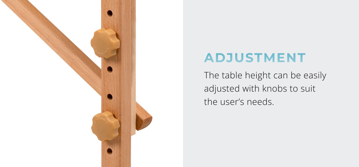The table height can be adapted to the height and individual needs of the person performing the treatment using the knobs located on the table legs within the range of 62–92 cm. Each leg consists of two matching elements, and once the desired height is selected, simply screw the parts into the appropriate holes to ensure the table remains stable. Additionally, the frame construction is reinforced with metal cables, making the massage table solid and perfectly suited for a wide range of treatments.