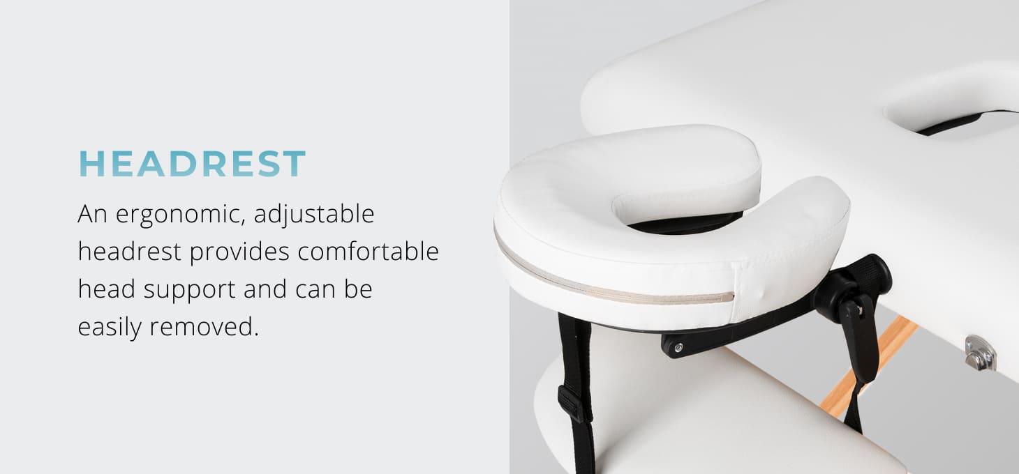 To ensure maximum comfort, the person using the table can rest their head on the ergonomic headrest, which is included in the set. This element is easy to adjust – it allows the angle to be adjusted in two planes, which makes it possible to precisely adjust its position to the user's needs and the nature of the treatment being performed. For supine therapy, the headrest can be removed, using a special hole in the tabletop instead. When not in use, the hole can be covered with the included plug, restoring the surface to an aesthetic and uniform appearance.