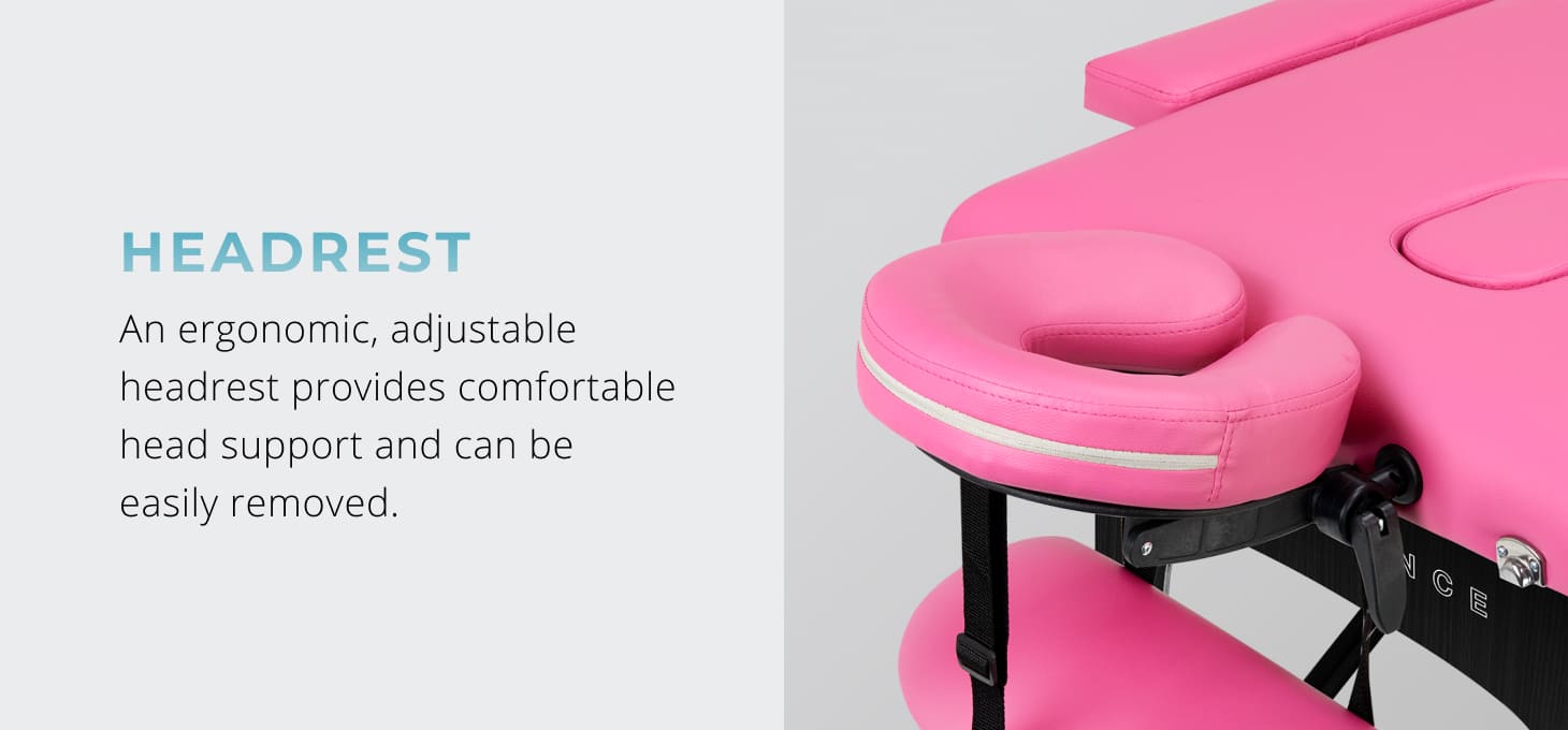 To ensure maximum comfort, the person using the table can rest their head on the ergonomic headrest, which is included in the set. This element is easy to adjust – it allows the angle to be adjusted in two planes, which makes it possible to precisely adjust its position to the user's needs and the nature of the treatment being performed. For supine therapy, the headrest can be removed, using a special hole in the tabletop instead. When not in use, the hole can be covered with the included plug, restoring the surface to an aesthetic and uniform appearance.