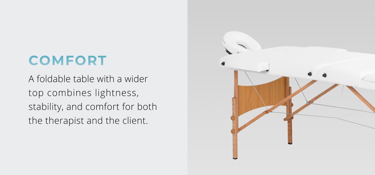 The BALANCE Lux folding wooden massage table is a practical and versatile solution, designed for the daily work of massage therapists, physiotherapists and other professionals. The three-segment construction ensures stability and comfort for both the person performing the treatment and the patient. Thanks to its compact dimensions, light weight and the included bag, it is also perfect for mobile work – allowing for quick and convenient folding and carrying.