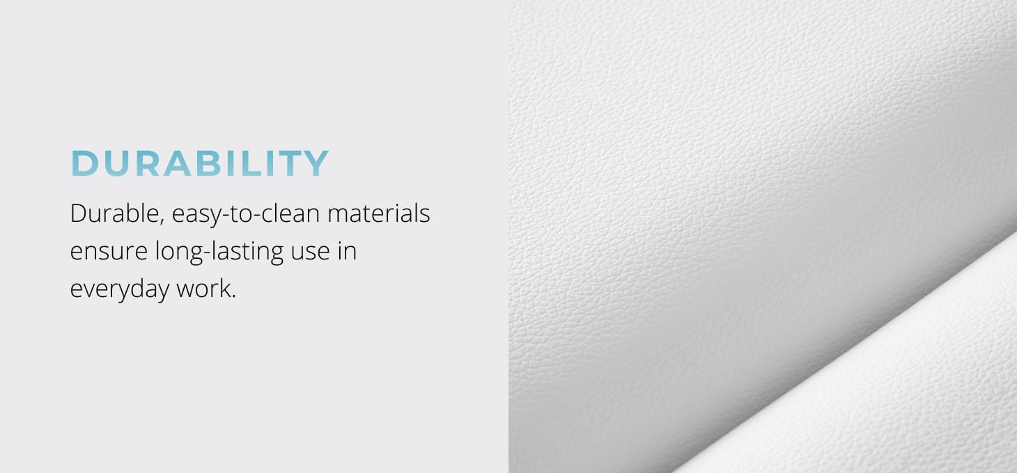 To ensure maximum comfort, the person using the table can rest their head on the ergonomic headrest, which is included in the set. This element is easy to adjust – it allows the angle to be adjusted in two planes, which makes it possible to precisely adjust its position to the user's needs and the nature of the treatment being performed. For supine therapy, the headrest can be removed, using a special hole in the tabletop instead. When not in use, the hole can be covered with the included plug, restoring the surface to an aesthetic and uniform appearance.