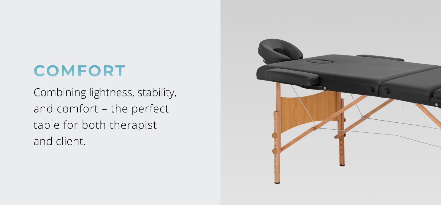 The BALANCE folding wooden massage table is a practical and versatile solution, designed for the daily work of massage therapists, physiotherapists and other professionals. The three-segment construction ensures stability and comfort for both the person performing the treatment and the patient. Thanks to its compact dimensions, light weight and the included bag, it is also perfect for mobile work – allowing for quick and convenient folding and carrying.