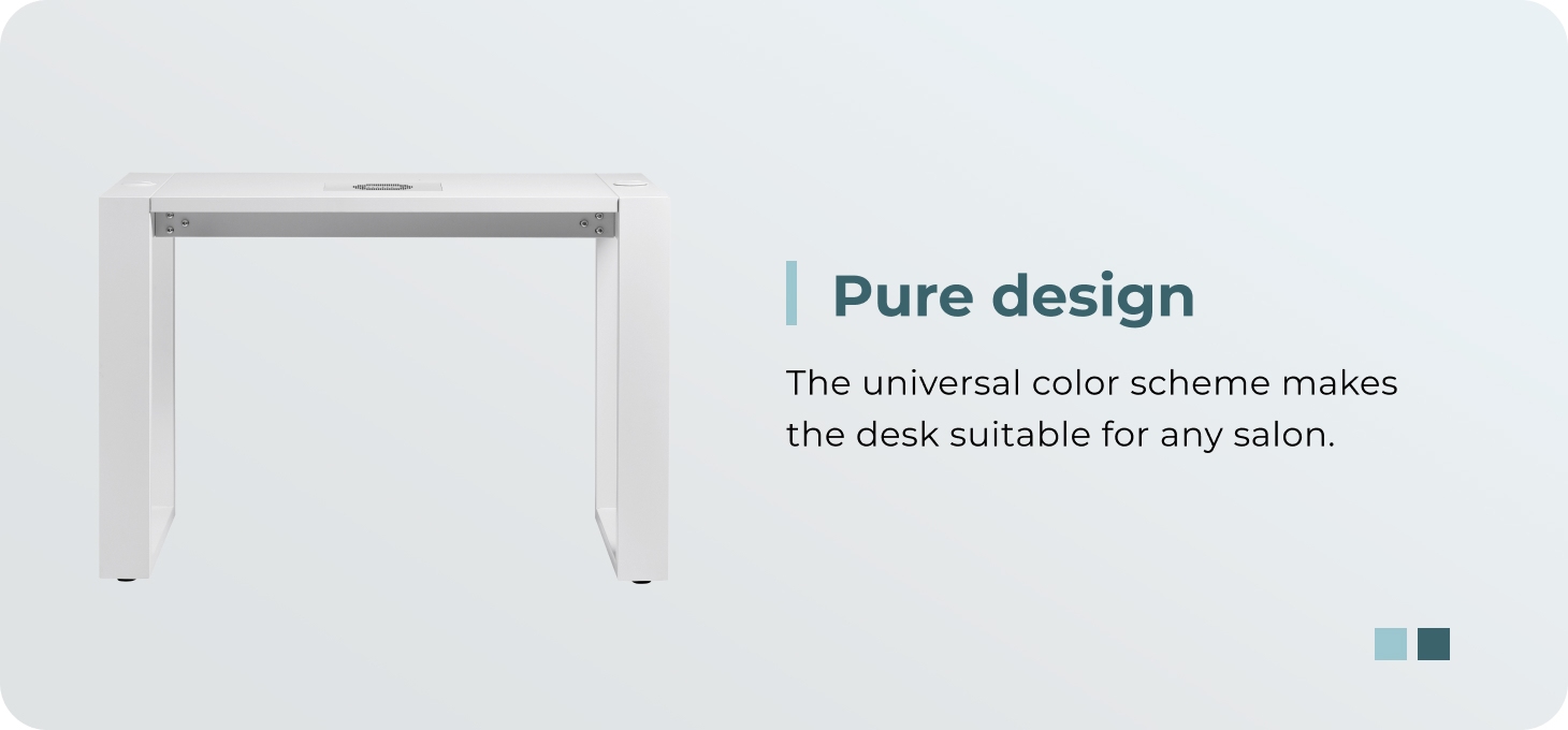 The universal white colour scheme and minimalist style make the desk fit easily into the interior of any living room. The materials used give the furniture a modern look while ensuring durability and ease of cleaning. The minimalist form makes the desk an aesthetically pleasing element that emphasises the simplicity and elegance of beauty salon spaces.