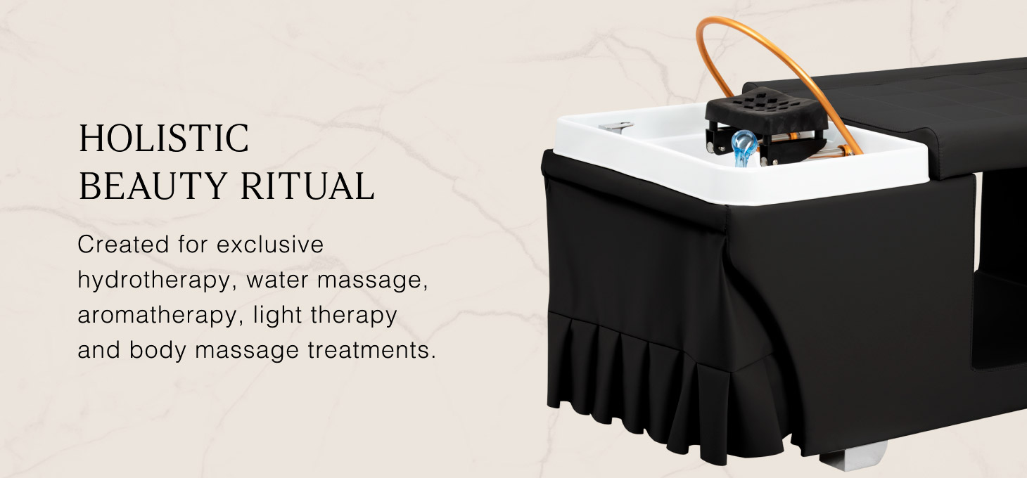 The elegant Gabbiano Head Spa Maldives bed with integrated wash unit is an innovative solution designed for professional care and relaxation treatments. It is perfect for luxurious Japanese Head Spa rituals, expanding the salon's offer with a wide range of scalp and hair therapies. It combines hydrotherapy techniques, water massage, aromatherapy, and light therapy techniques, offering a comprehensive and holistic experience. Advanced technologies combined with an ergonomic design guarantee exceptional comfort for customers and facilitate the work of beauty and wellness professionals. The Gabbiano Head Spa Maldives combines tradition with modernity, providing deep relaxation, nourishment and hydration of the scalp and hair. It can also be used for body massage, making it a versatile therapeutic and relaxation tool.