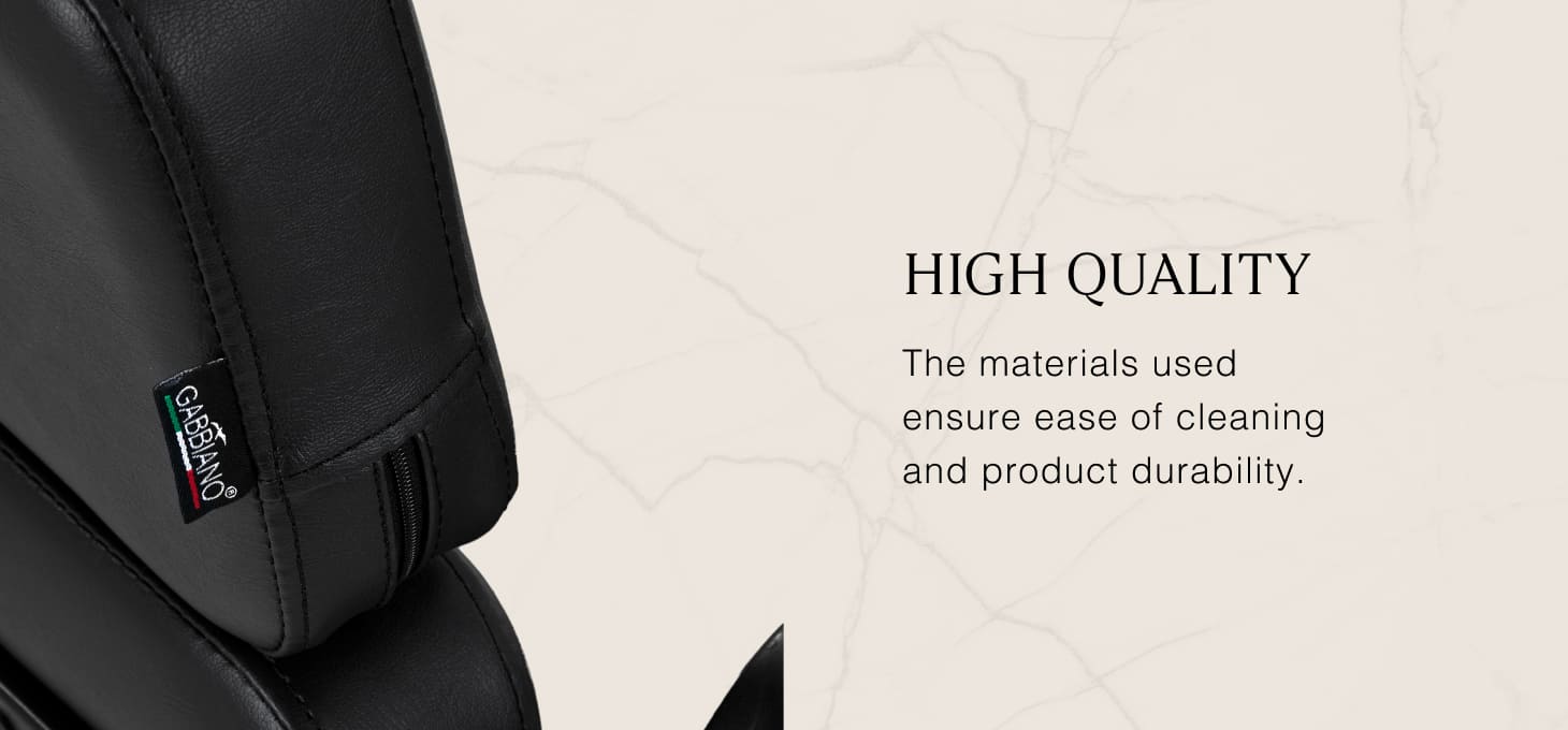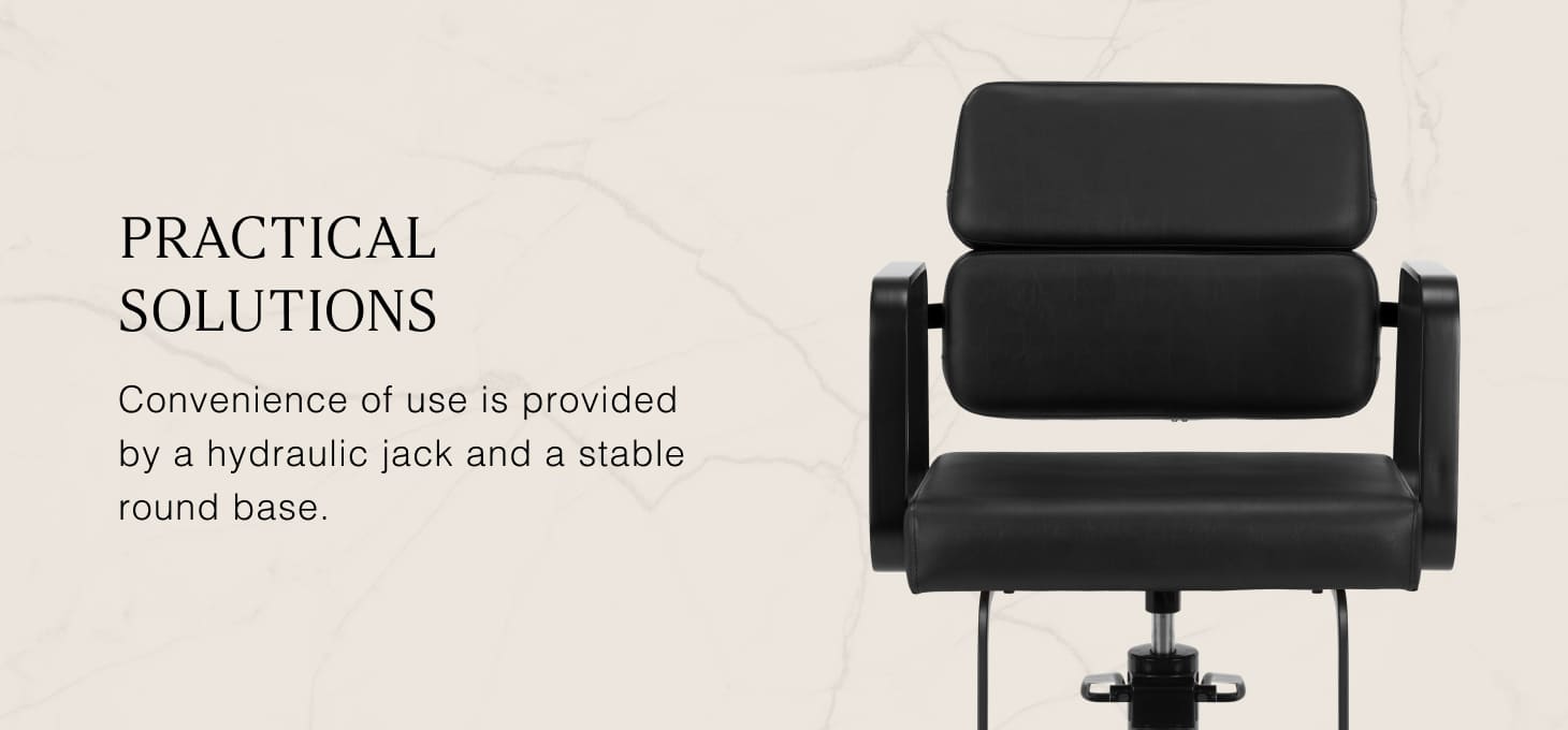Filling with durable, deformation-resistant foam and upholstery made of pleasant-to-touch synthetic leather ensure the durability of the furniture and its comfortable use for a long time. It also makes the equipment resistant to moisture, durable and easy to clean. The black covering gives it a unique character. The equipment is distinguished by a modern design, which makes the armchair look great in many professional salons.