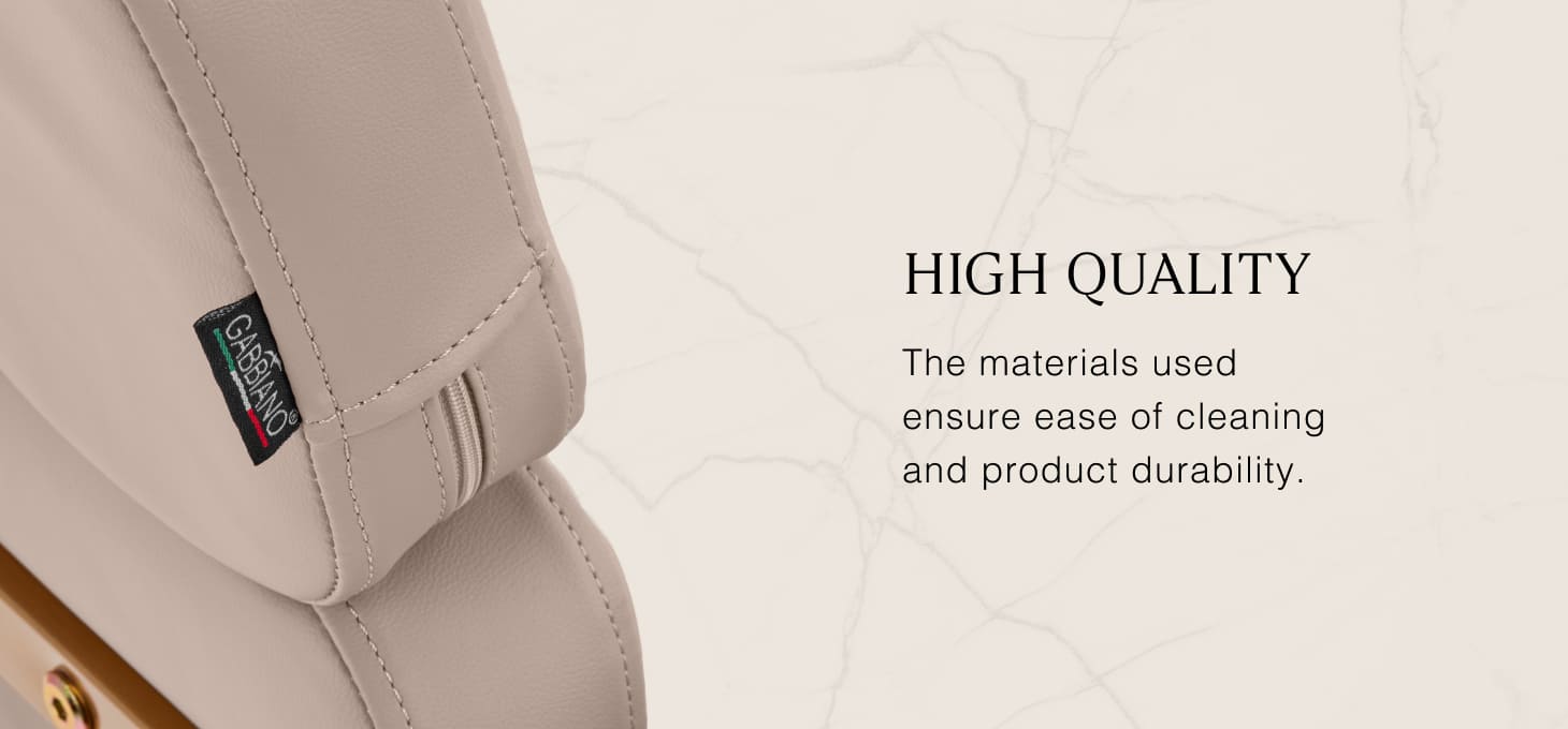 Filling with durable, deformation-resistant foam and upholstery made of pleasant-to-touch synthetic leather ensure the durability of the furniture and its comfortable use for a long time. It also makes the equipment resistant to moisture, durable and easy to clean. The beige covering gives it a unique character. The equipment is distinguished by a modern design, which makes the armchair look great in many professional salons.