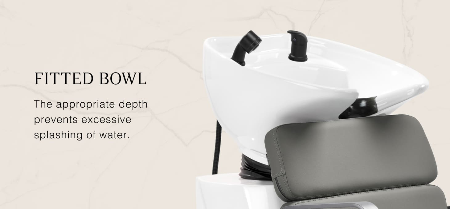 The appropriate depth of the white ceramic washbasin bowl prevents excessive splashing of water or products used during treatments. This allows for comfortable and effective performance of a wide range of services. The angle of the bowl can be adjusted, making it easy to adapt to individual needs. The high quality of the materials used makes the washbasin durable, resistant to discoloration and scratches, and very easy to clean. A properly profiled collar and inclined backrest provide support and comfort when washing the hair, and thanks to the comfortable black plastic overlay, the customer will not feel the unpleasantness of the cold ceramic surface.