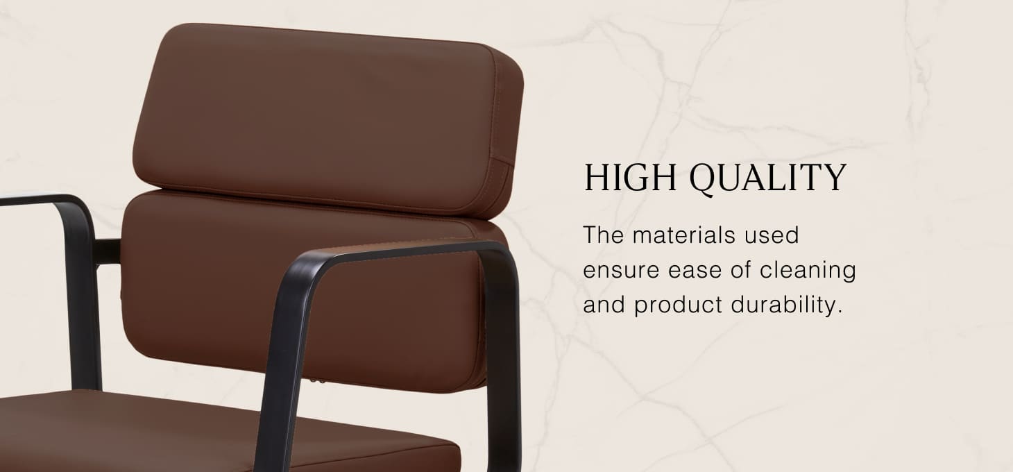 Filling with durable, deformation-resistant foam and upholstery made of pleasant-to-touch synthetic leather ensure the durability of the furniture and its comfortable use for a long time. It also makes the equipment resistant to moisture, durable and easy to clean. The gray covering gives it a unique character. The equipment is distinguished by a modern design, which makes the armchair look great in many professional salons.