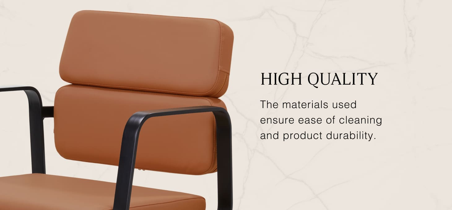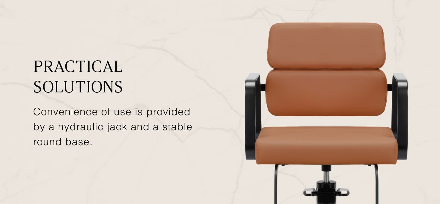 The durable hydraulic lift allows you to adjust the seat level within the range of 49-61 cm - even when the client is sitting on the chair. It ensures more ergonomic work, allowing you to adjust the seat level to the height of both the client and the hairdresser. The visually interesting backrest allows you to take a convenient position, providing excellent back support, which is especially important in the case of long-hour treatments. A big advantage of this model is the hole left between the backrest and the seat. It makes it easier to keep the salon clean by allowing you to easily sweep hair from every nook and cranny of the chair. This allows you to streamline the preparation of the workstation between clients.