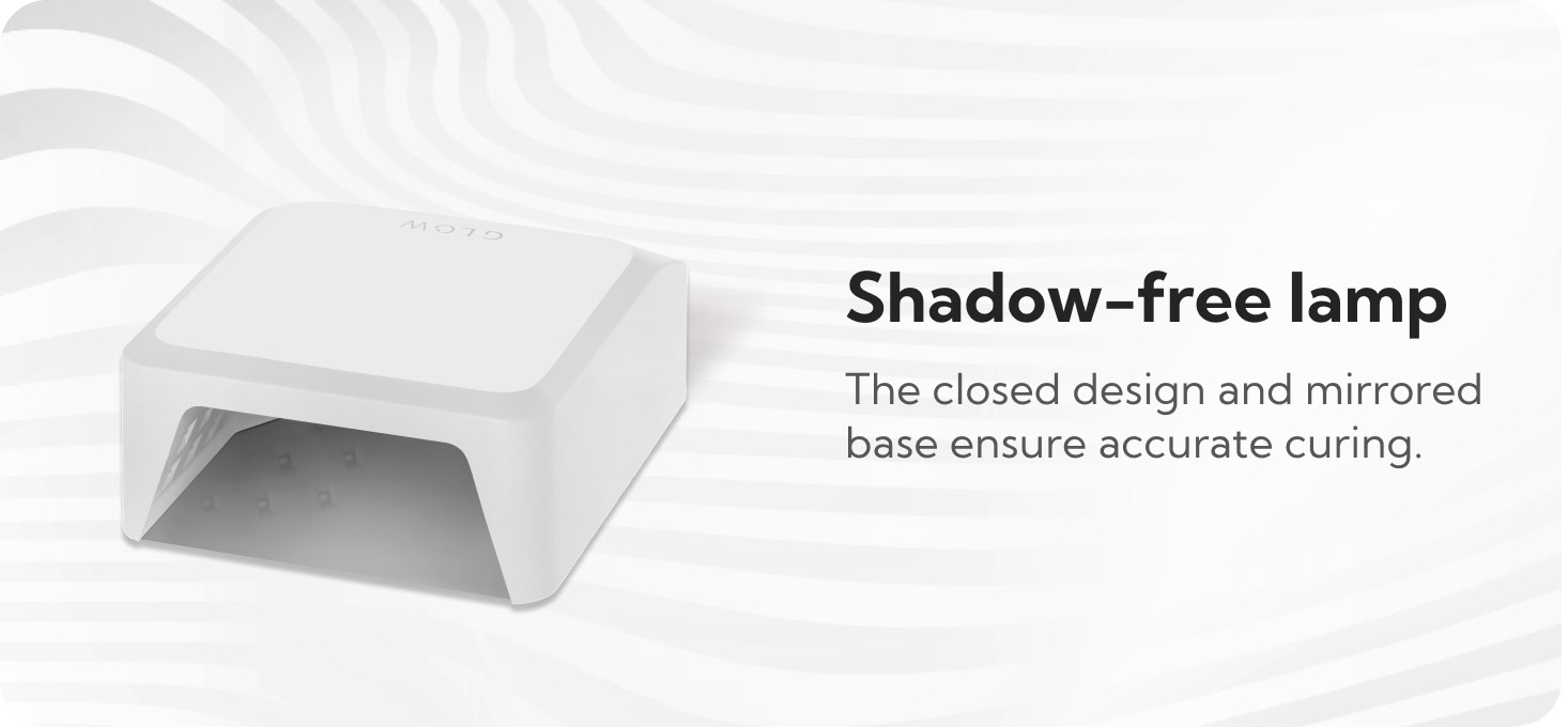 The Glow 112 UV/LED lamp with a mirrored bottom allows for precise curing of hybrid varnishes, gels and other light-curing preparations. Properly spaced diodes and Dual LED technology ensure even and durable curing of the styling, while the minimalist design and intuitive operation increase the comfort of work in the salon and at home.