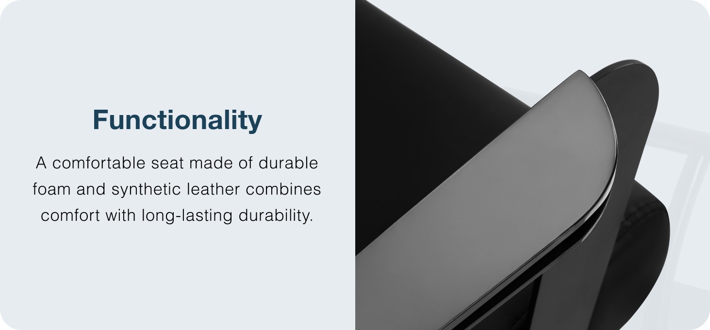 The seat is filled with durable, deformation-resistant foam and covered with synthetic leather, ensuring comfort and long life. The materials are moisture-resistant, easy to clean and suitable for intensive use in salon conditions. The black upholstery gives the chair an elegant, timeless character that harmonises with the black structural elements. The modern design makes the Hair System Jet hairdressing chair an aesthetic and functional piece of equipment for professional hairdressing salons.