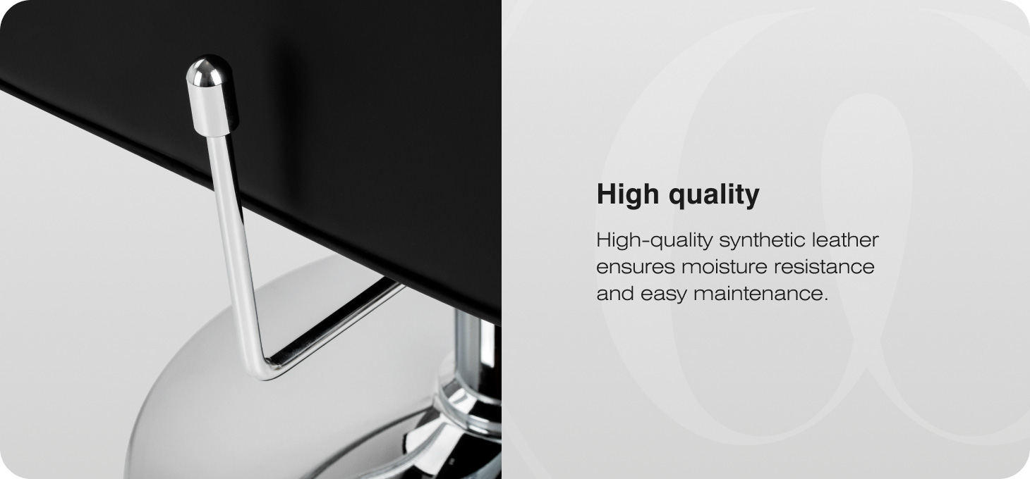 The model stands out with its modern design, which emphasises the professional character of the salon. The upholstery, made of high-quality synthetic leather in classic black, gives the chair an elegant look, whilst its surface is moisture-resistant and easy to keep clean. The round base and metal footrest emphasise the chair’s modern style, creating a cohesive form suited to a variety of interior designs.