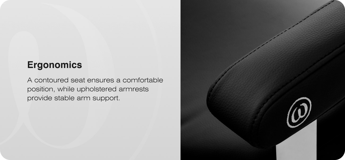 The chair’s design ensures comfort even during longer treatments. The profiled seat promotes a comfortable body position, while the ergonomic, padded armrests provide stable support for the arms. The wide seat surface enhances the client’s comfort. The full-rotation mechanism increases the stylist’s freedom of movement and makes it easier to manoeuvre around the chair.