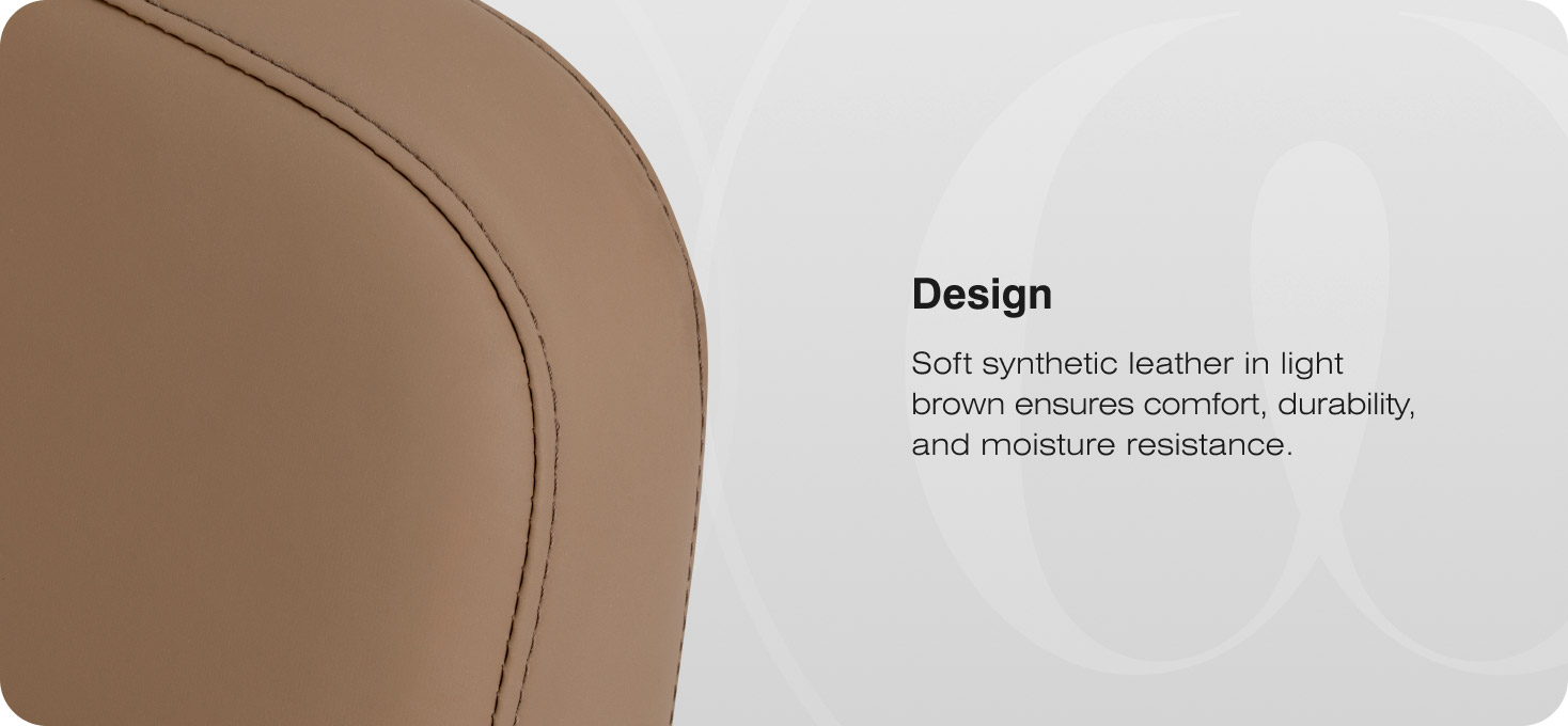 The modern design and stable, round base in a beige shade emphasise the model’s elegant character. The soft-touch synthetic leather in shades of light brown ensures high comfort even during longer treatments, while also standing out for its durability, moisture resistance and ease of cleaning. The chair blends perfectly with both modern and classic interiors, emphasising the salon’s professional image.