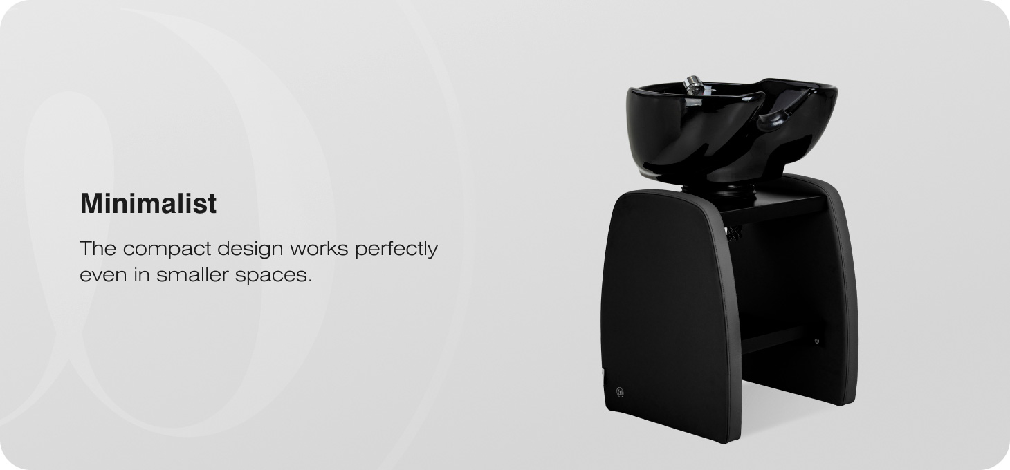 The Omega Aqualina hairdressing wash unit, with its minimalist design, is a stylish and practical piece of equipment for modern hairdressing salons. The model has been designed as a freestanding unit with a basin, intended for use with any hairdressing chair of your choice. This allows for greater freedom in arranging the space and tailoring the unit to the salon’s individual needs. Its modern, rounded design and compact dimensions make the wash unit ideal for smaller salons.