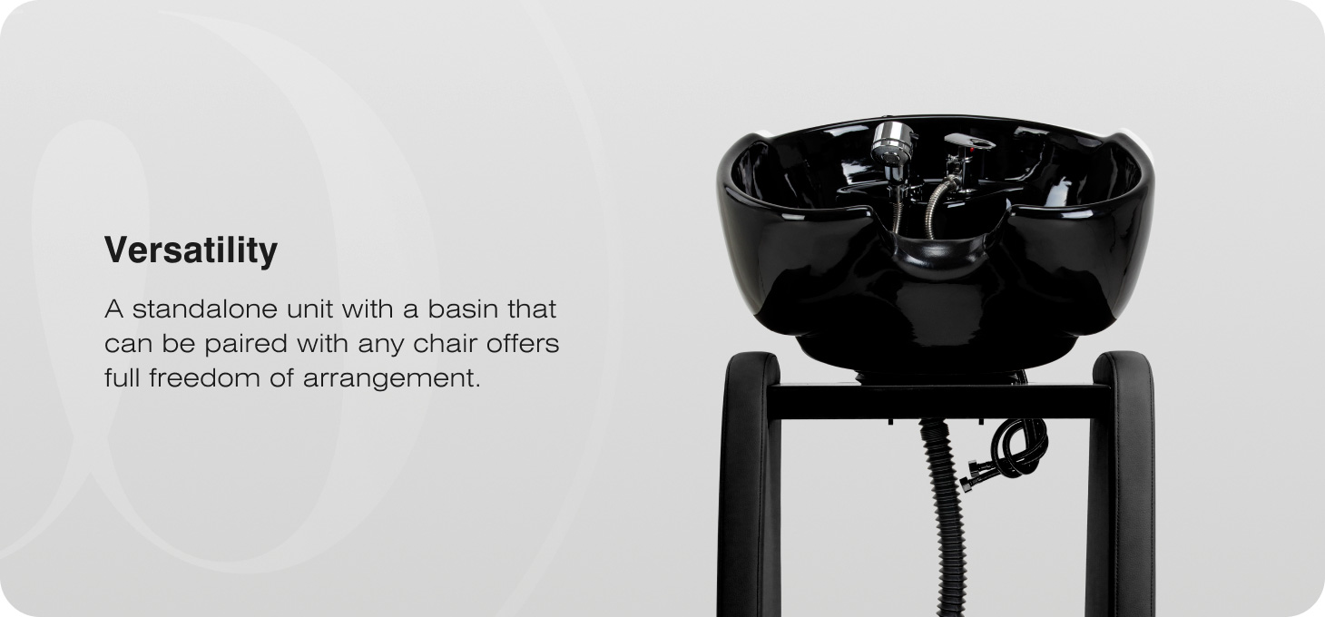 The model has been designed as a freestanding unit with a basin, which can be positioned behind the hairdresser’s chair of your choice. This solution allows you to use your favourite chair models and easily adjust their height to suit the stylist and client’s needs, as well as the layout of the workstation. The functional design and high flexibility of arrangement facilitate the organisation of the workspace and allow the station to be adapted to the specific requirements of the salon.