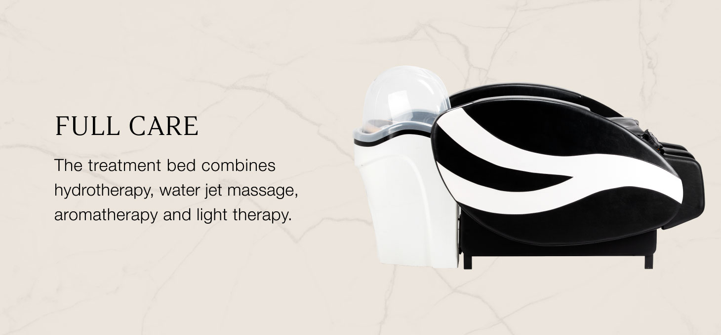 The Gabbiano Head Spa Sea 501 professional hairdressing wash unit with a massage lounger is a modern solution designed for advanced care and relaxation treatments. It is ideal for luxurious Japanese Head SPA rituals, expanding the salon’s range with a wide range of scalp and hair therapies. The unit combines hydrotherapy, water massage, aromatherapy and light therapy to provide a comprehensive care experience, while the precision-engineered massage heads and air bag system promote muscle relaxation and deep relaxation. The model combines tradition with modernity, providing deep relaxation, nourishment and hydration for the scalp and hair.