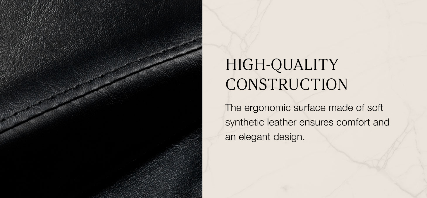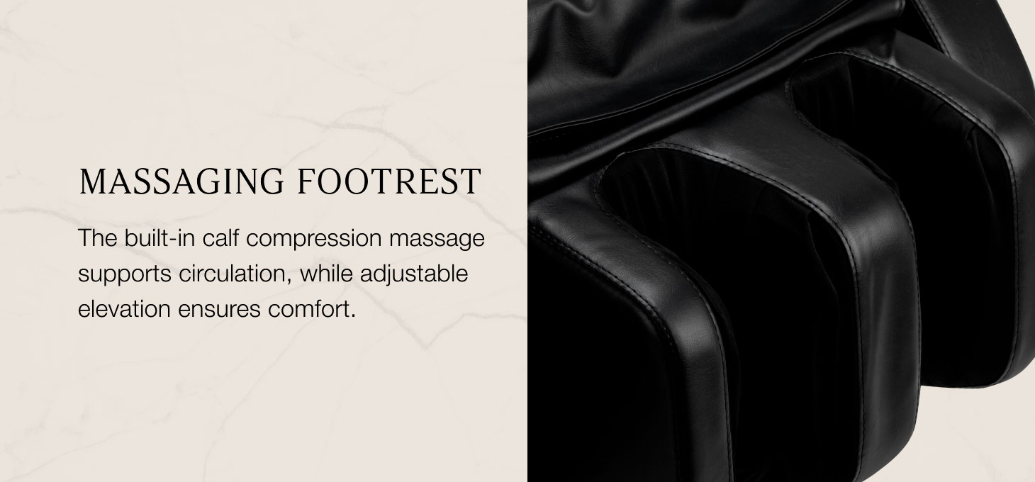 The integrated height-adjustable footrest allows for optimal positioning of the client’s legs, enhancing their comfort. The lifting function provides adequate support for the calves, promoting relaxation of the entire body and maintaining an ergonomic position even during long sessions. The built-in calf compression massage promotes circulation and enhances the relaxation effect, while the ability to adjust the lift level from the control panel allows the setting to be precisely tailored to individual needs.
