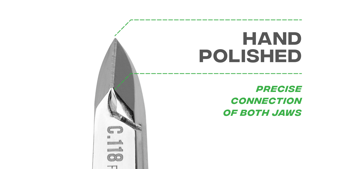 The 7 mm long blades are perfect for intricate manicure treatments. The bevel profile and the right size make it easy to perform intricate treatments. The jaws of the pliers are joined by the Lap Joint method, so that they make perfect contact during use, ensuring an accurate cut. The pliers have a matching blade guard made of durable plastic.