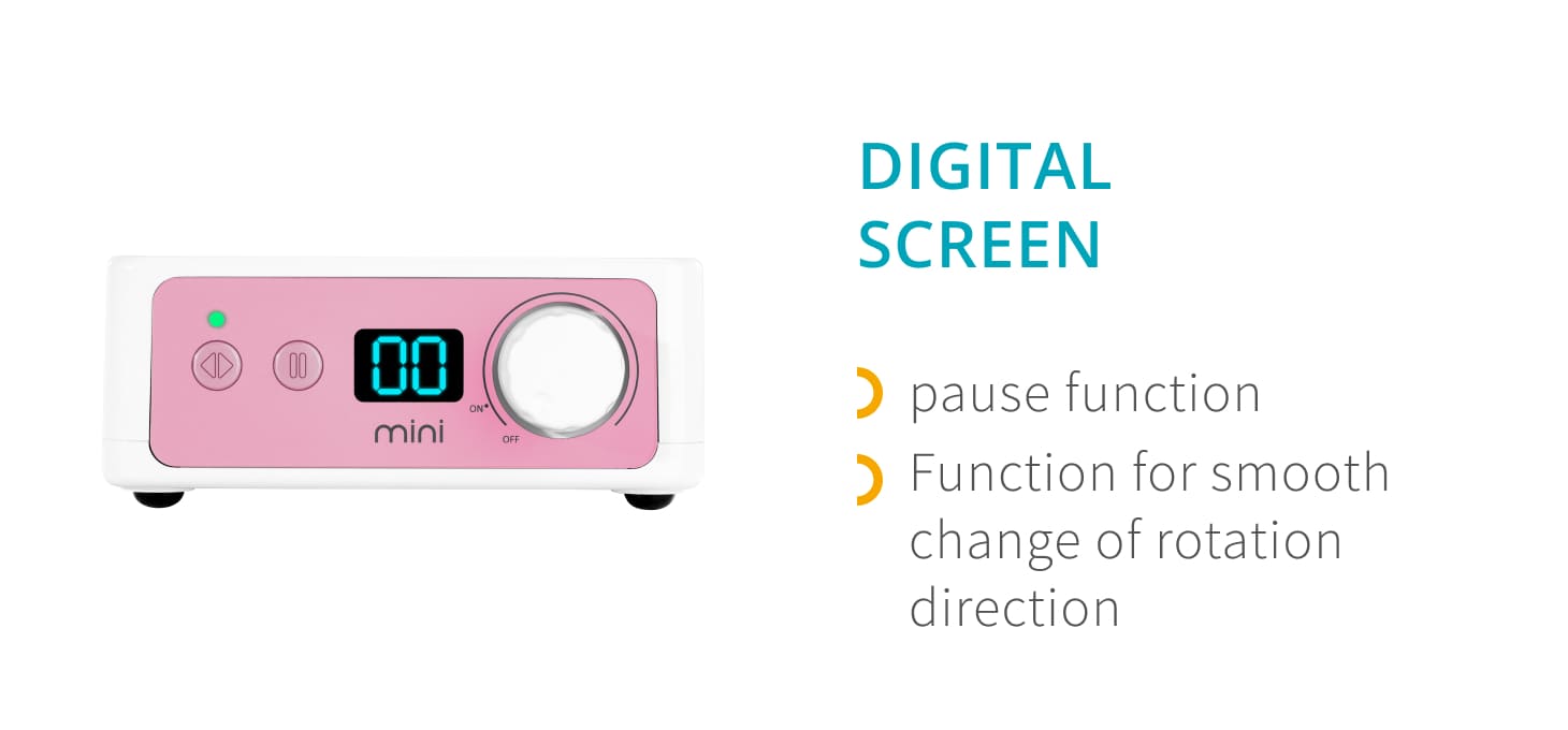 The nail drill is equipped with a clear control panel with a digital display, which plays a key role in monitoring and controlling the operation of the device. The screen informs about the rotational speed at which the unit’s head is currently operating to ensure precise and safe operation of the nail drill machine. The speed can be adjusted using a knob up to 30 000 revolutions per minute, allowing for customization and therefore and thus comfortably perform a wide range of treatments. System of smooth rotational direction change with a built-in pause ensures safe and comfortable switching between both working directions. Additionally, the control diode lights up in green or red, making it easier to recognize the direction of operation of the nail drill machine. The control panel also has a pause function, which allows the user to stop the device, giving greater control over the process. The solutions used make the operation of the nail drill intuitive and very effective.