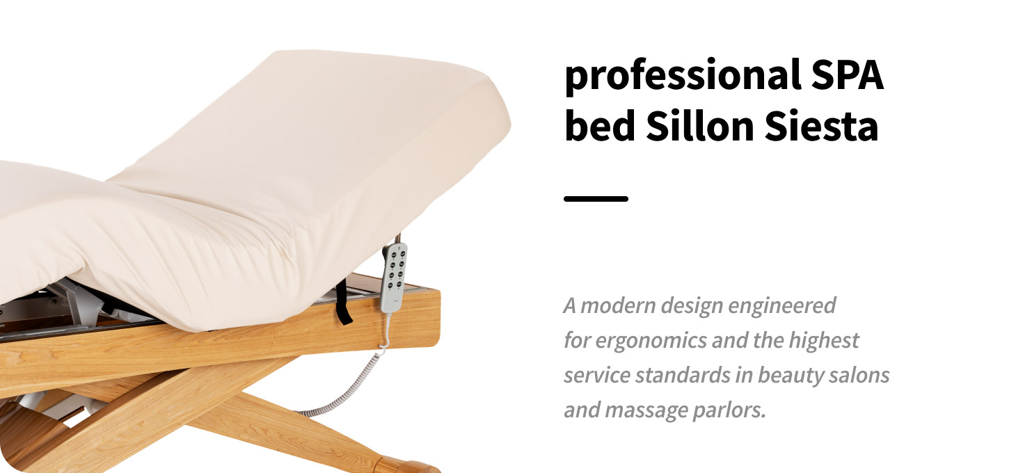 The Sillon Siesta SPA lounger has been designed for professional beauty salons, massage parlours and SPA areas. The model combines modern technological solutions with high comfort of use and a stable, durable construction. Its well-thought-out form and refined details ensure functionality, aesthetics and comfort of work, responding to the needs of beauty industry professionals.