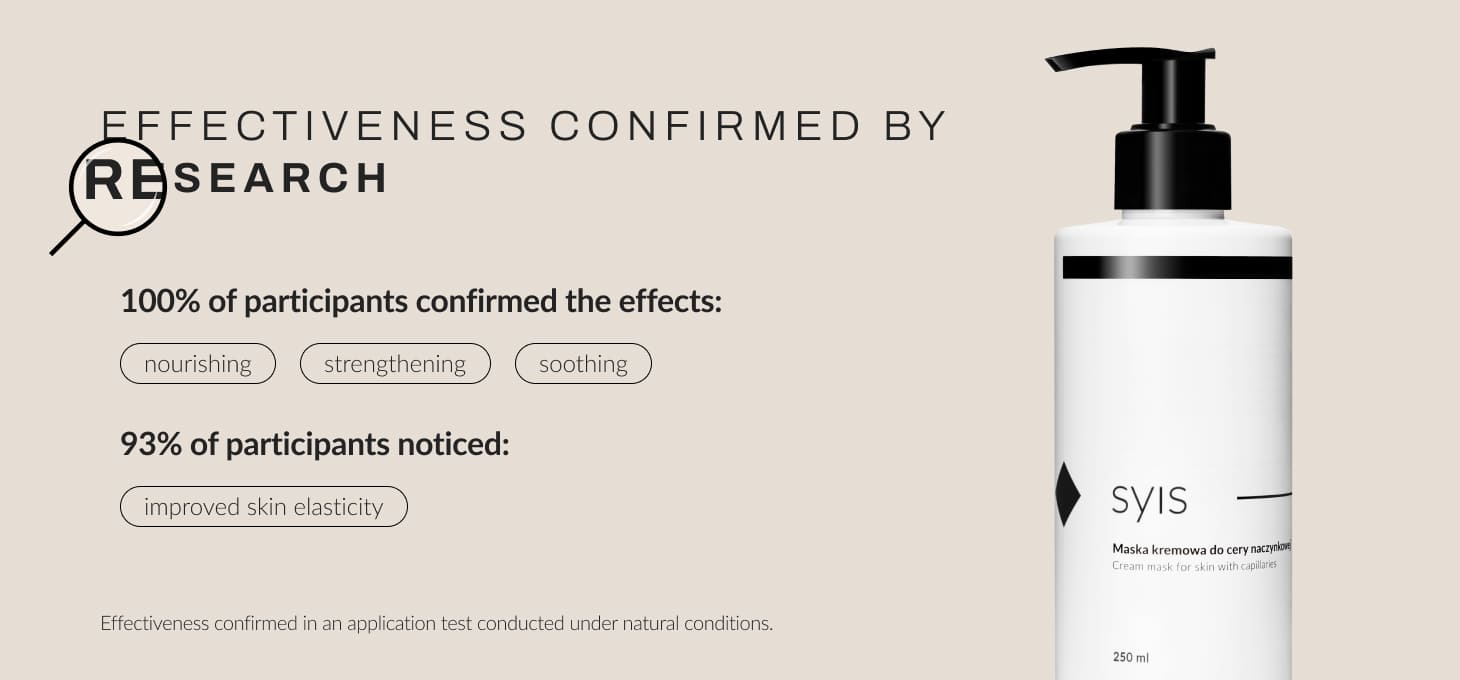 SYIS professional cream mask for vascular skin has been developed for delicate, sensitive skin prone to redness and irritation. Ideal for both professional and home care, it promotes regeneration, soothes and strengthens the skin.