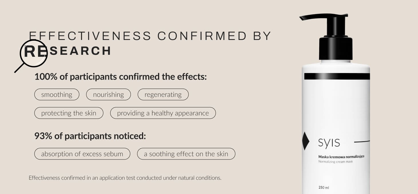 SYIS professional normalising cream mask was developed for oily, combination and problematic skin. It helps improve skin condition, absorbs excess sebum and promotes epidermal regeneration. Ideal for both professional and home care - for skin in need of cleansing, soothing and protection.